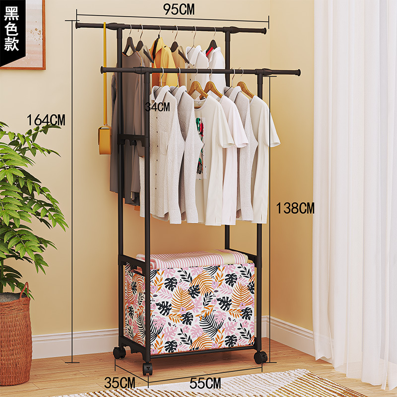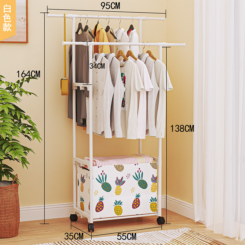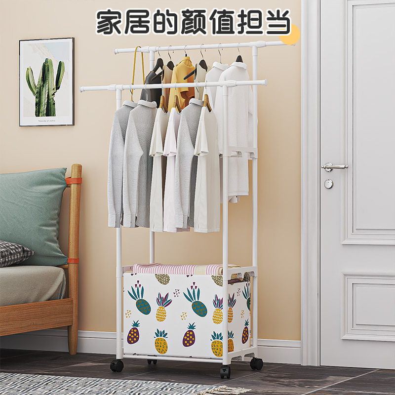 热销简易款家用双杆晾衣架收纳脏衣篮卧室衣帽架裤架鞋帽架