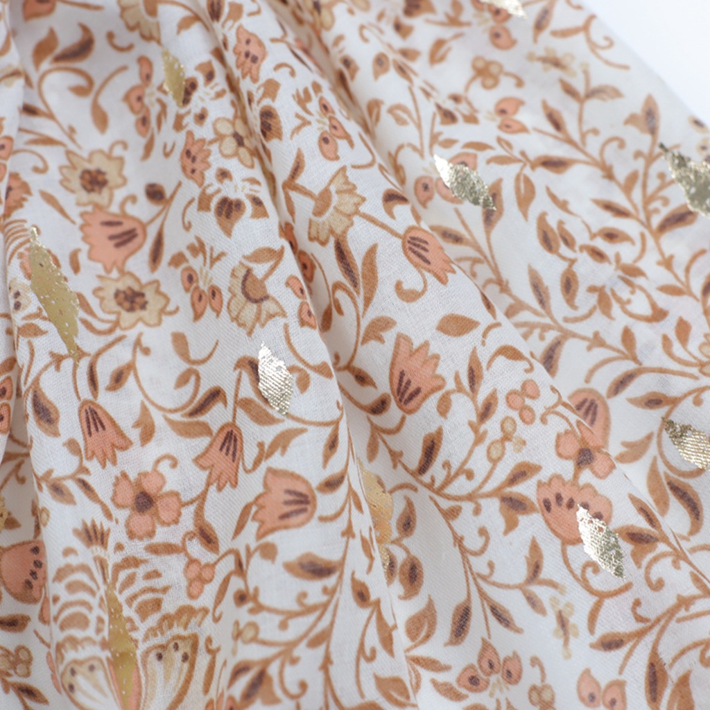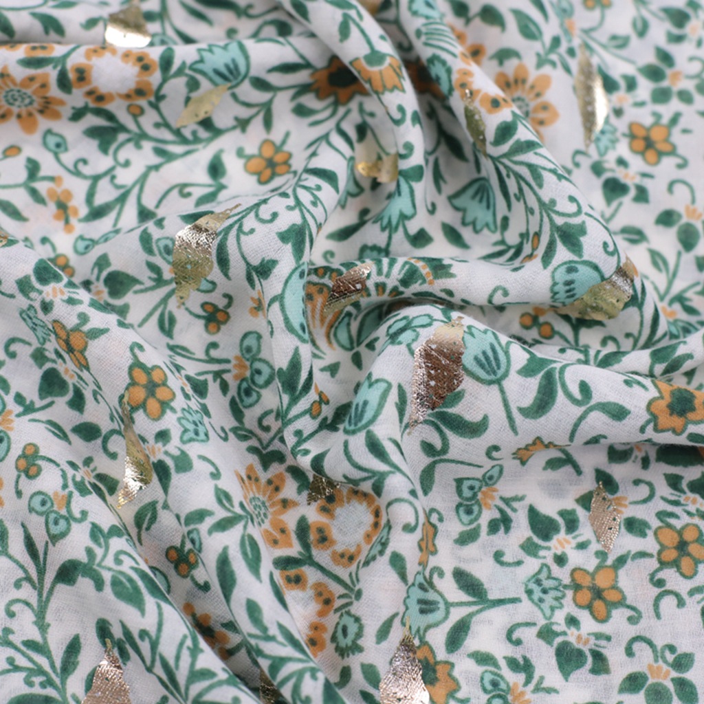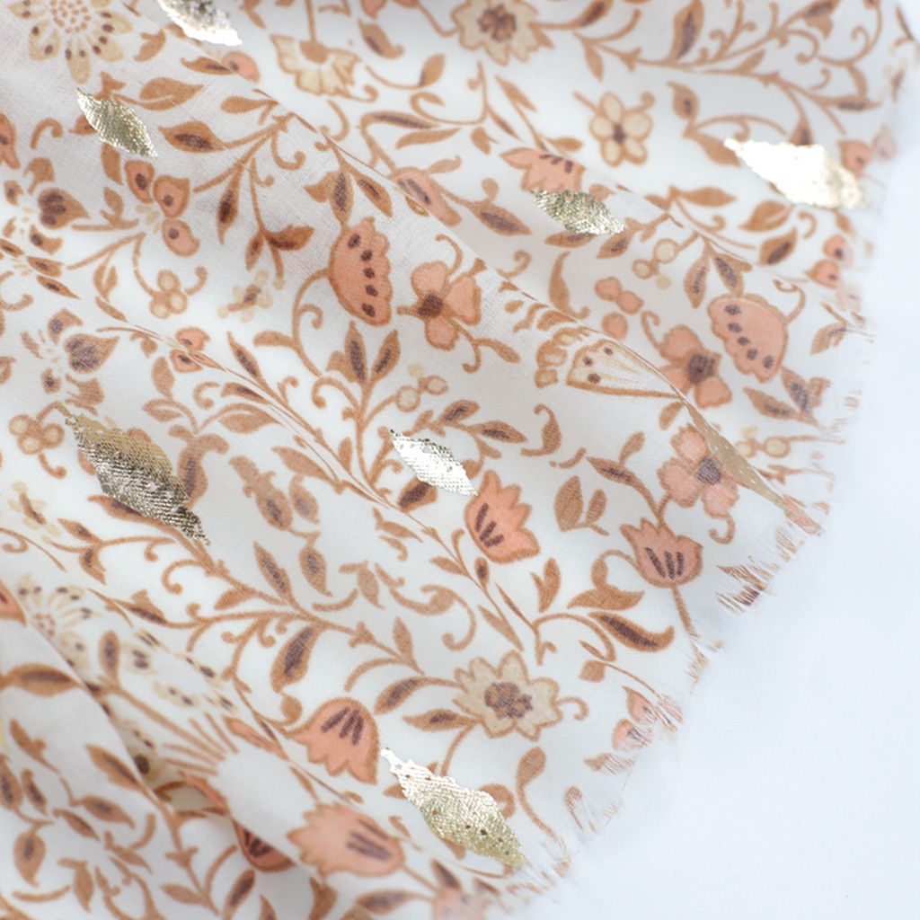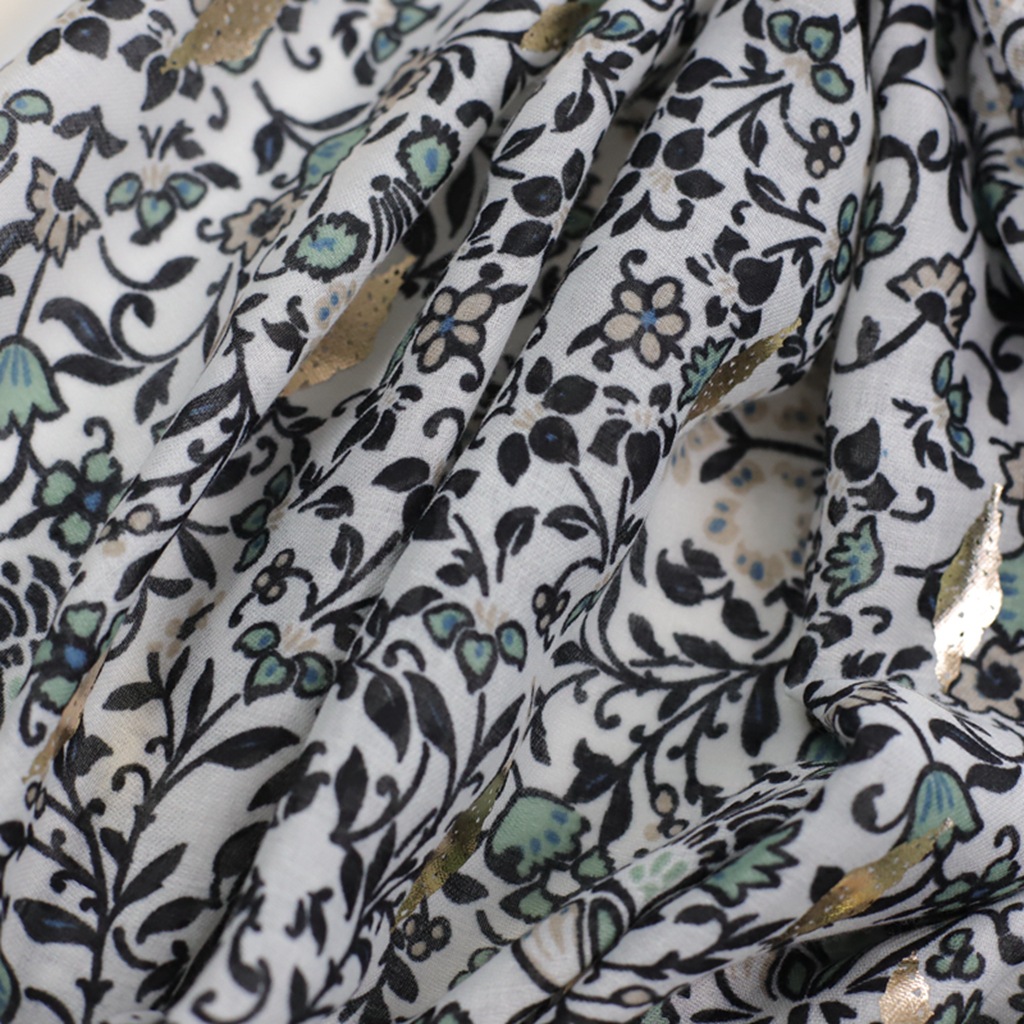 厂销外贸跨境直播烫金蔷薇印花丝巾缎纹棉好手感女士长巾春秋围巾 English | 投诉