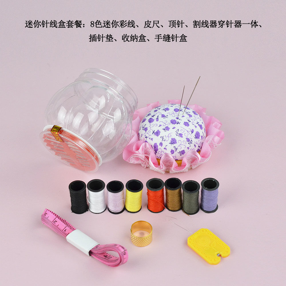 【产品组成】:插针垫,南瓜盒,8色线,针盒, 穿 针割线器,顶针,皮尺组成,供家庭日常使用,方便实用。国内销售,国外出口欧美东南亚中东等等地区。
