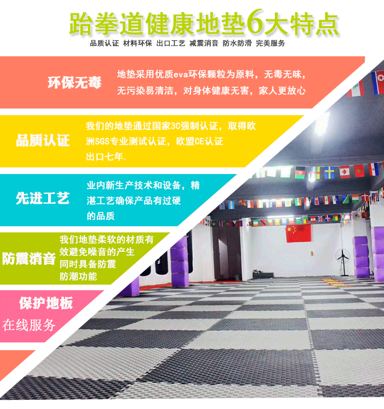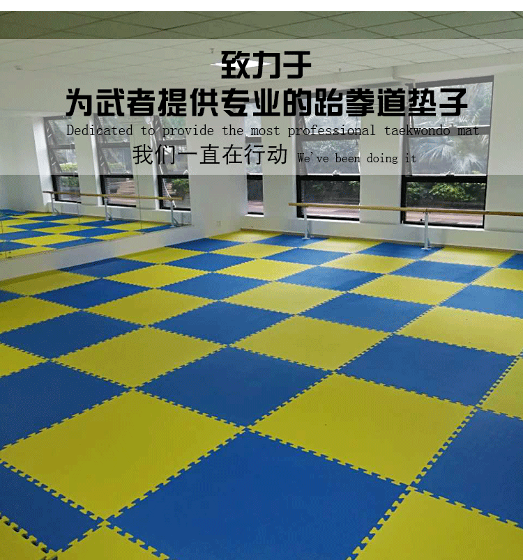 此款跆拳道地垫密度是90kg/立方,硬度是35-38,适用于道馆武术馆散打训练舞蹈等等,软硬适中,具有柔韧性和回弹力,使用寿命长,如需要其他硬度和密度地垫麻烦联系在线客服定做,请悉知哦!