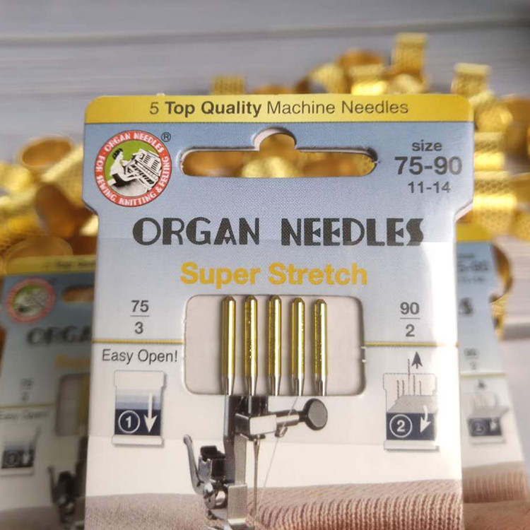 真善美的蓝针 紫针就是风琴的这款针织专用针(真善美是缝纫机生产厂家不生产机针,所搭配的原装针就是从风琴拿过去的这个松织面料专用针,尾部涂蓝色和紫色就是大家所知道的蓝紫针)