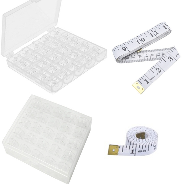 2盒25格透明梭心+2软尺,包装尺寸:11.8*9.7*5CM 重量:210g左右