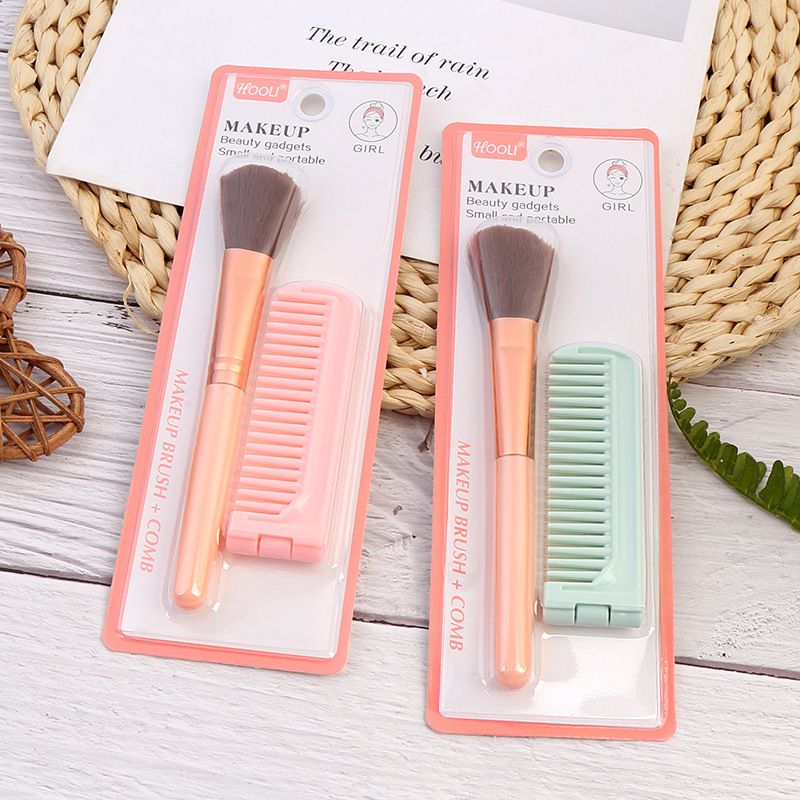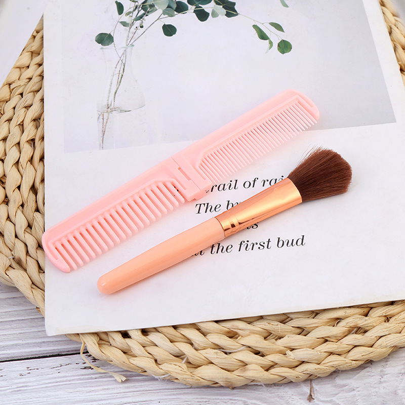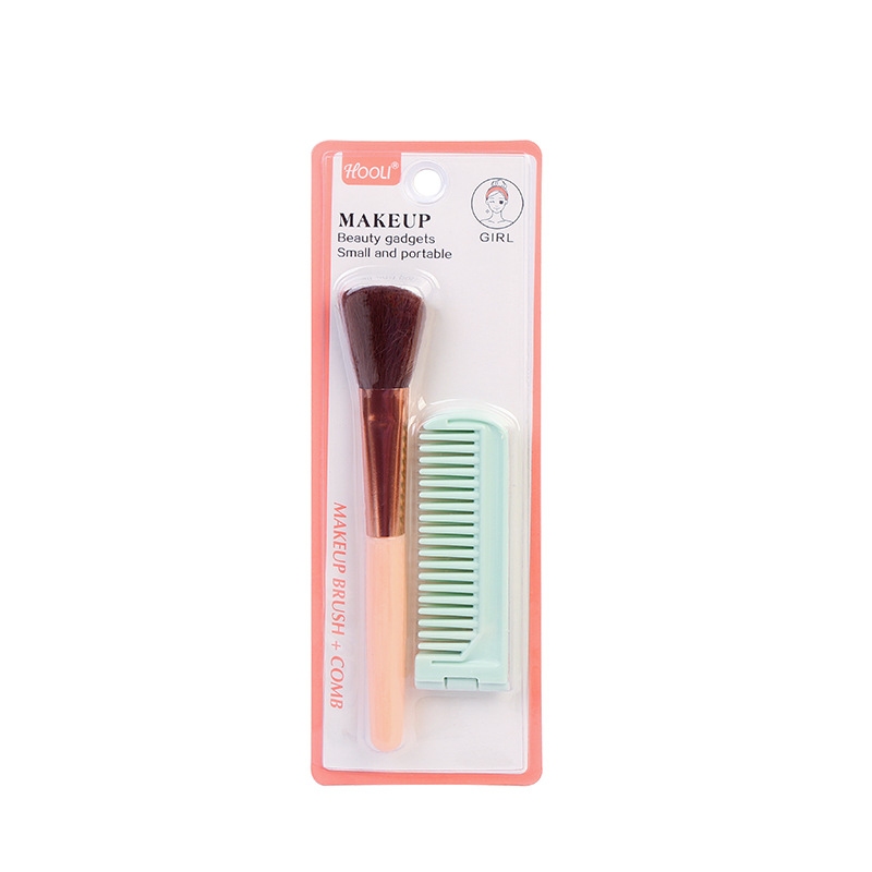 便捷式化妆刷梳子两件套散粉腮红刷易上妆刷梳发美妆工具跨境批发