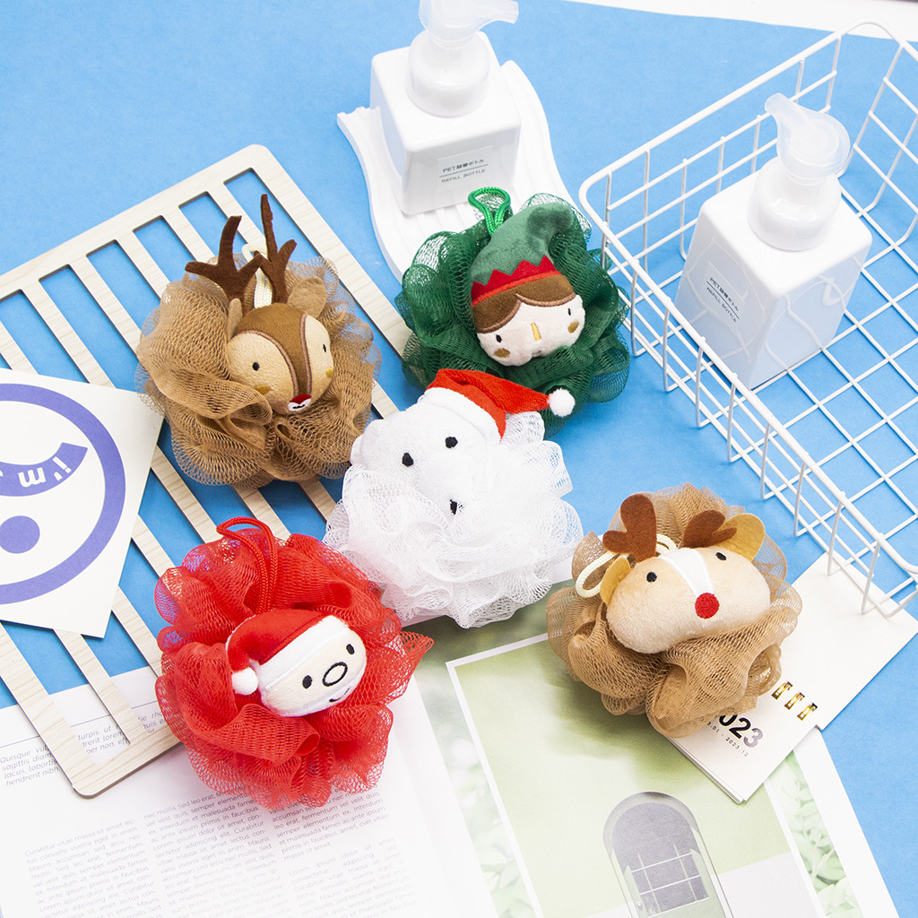 儿童圣诞沐浴球浴花可爱泡澡球浴球卡通洗澡泡泡超柔软搓澡球不散