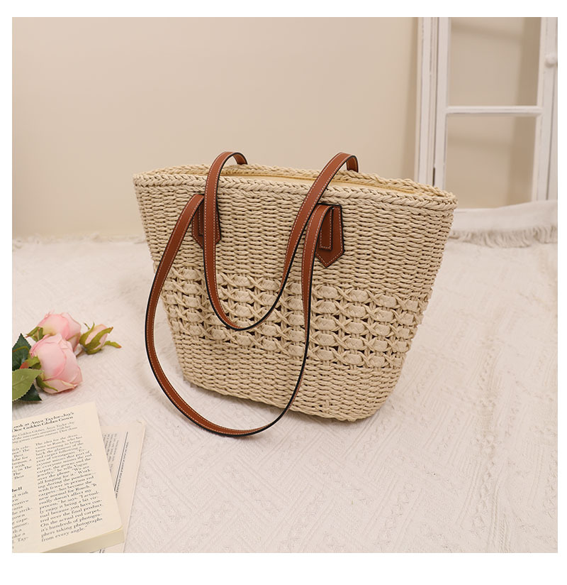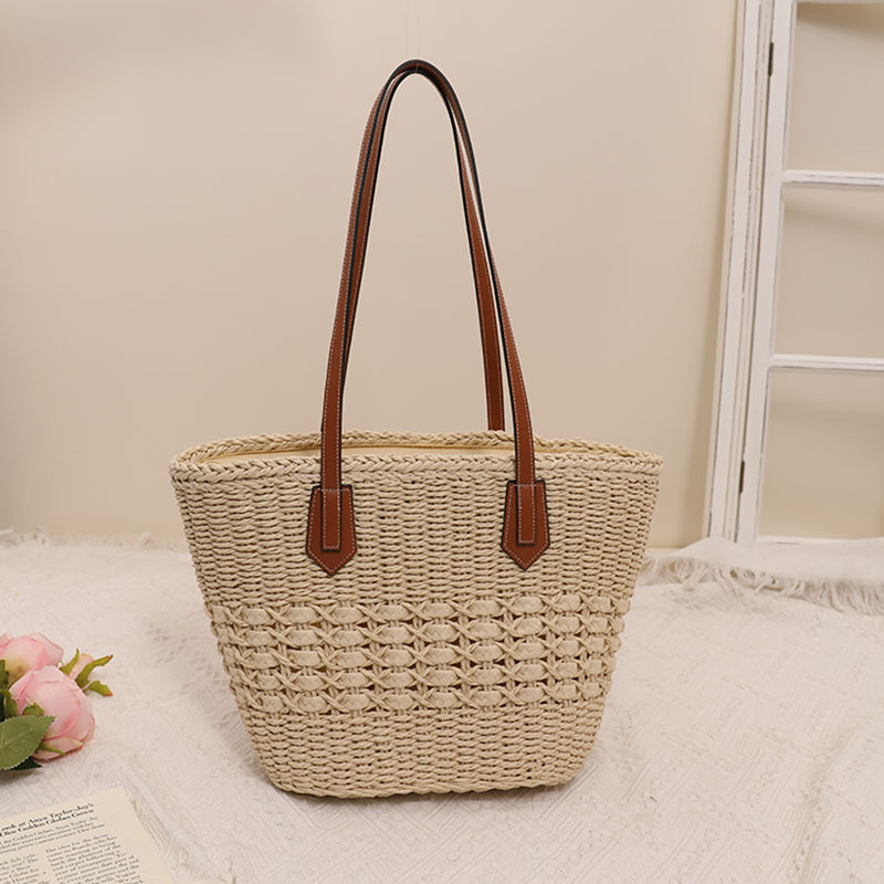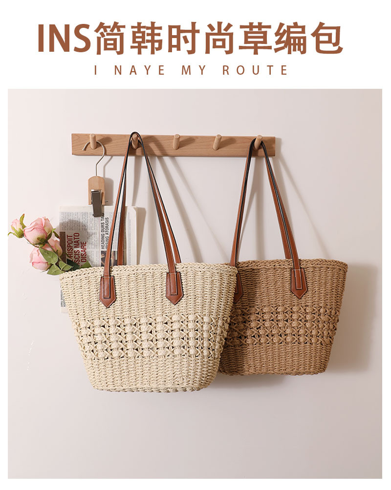 韩国百搭大容量镂空草编包新款夏简约通勤女包单肩手提草包编织包