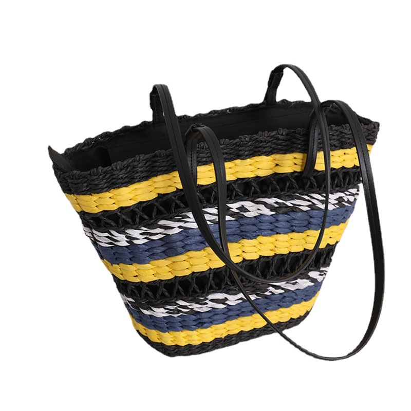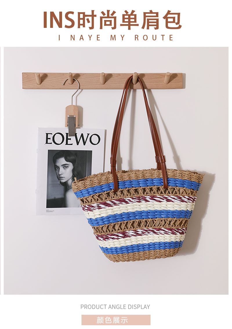 法式镂空草编包新款复古条纹手提草包编织包海边度假沙滩包单肩包
