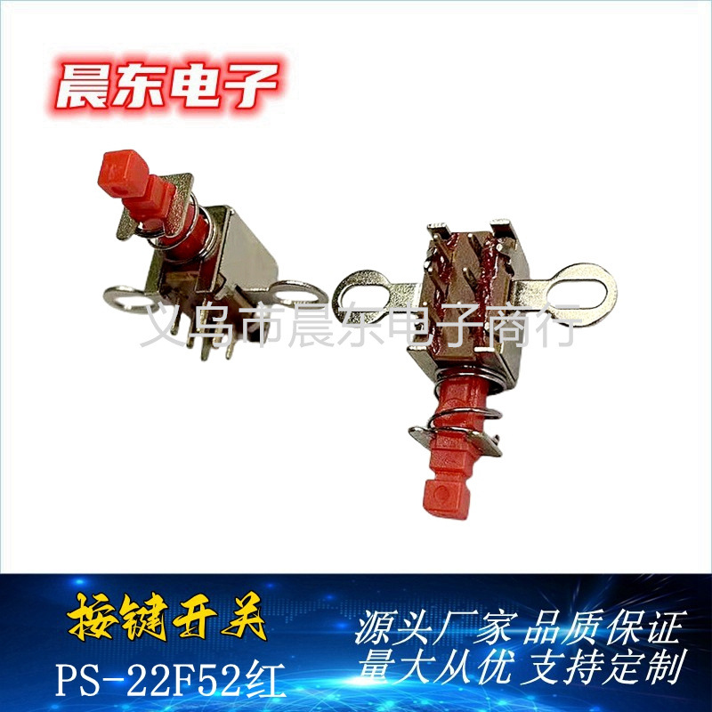 厂家批发 PS22F52红 自锁直键开关 双排6脚 立卧式按键开关 投诉