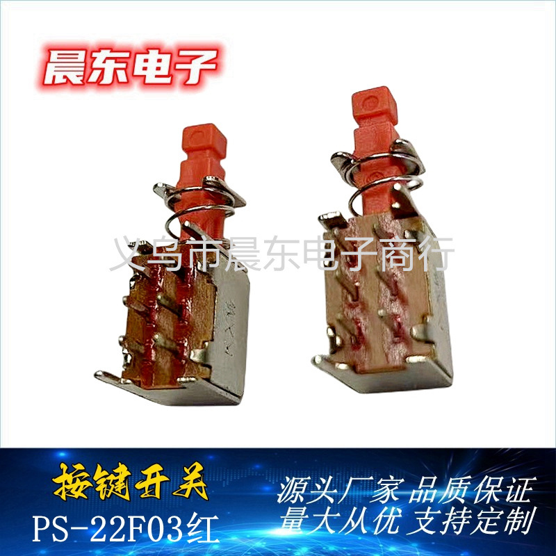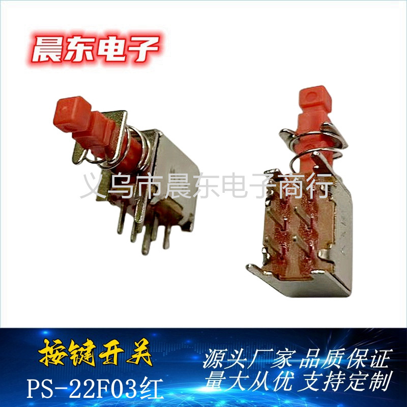 厂家批发 PS22F03红 自锁直键开关 双排6脚 立卧式按键开关 投诉