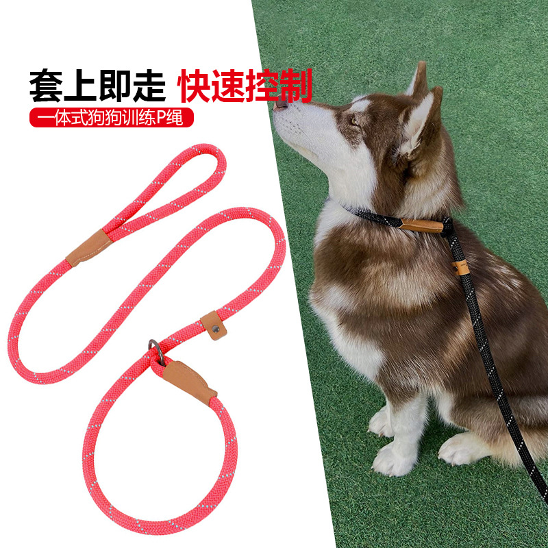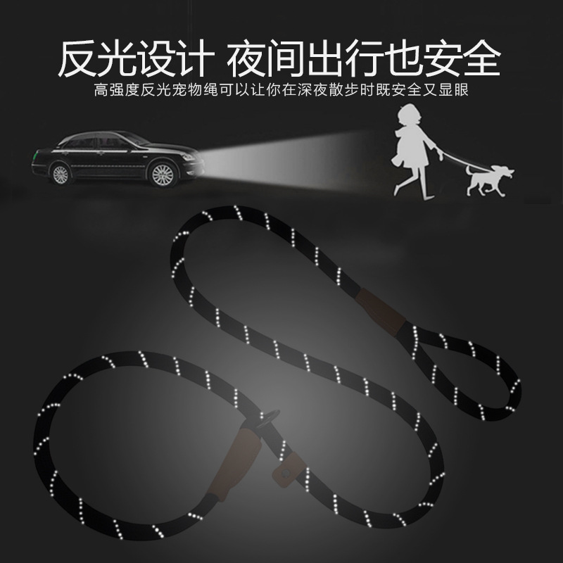 跨境热款涤纶织带反光狗绳子户外训练宠物狗狗牵引绳舒适不勒手
