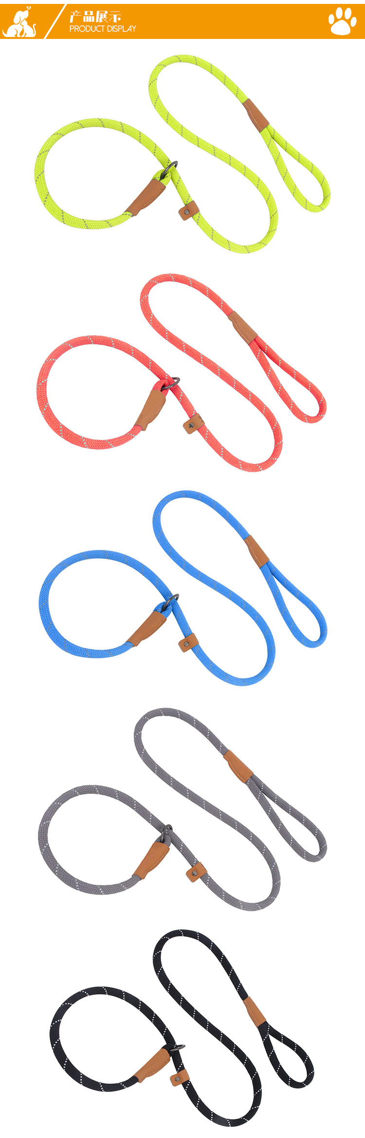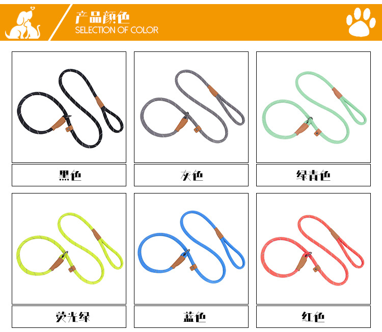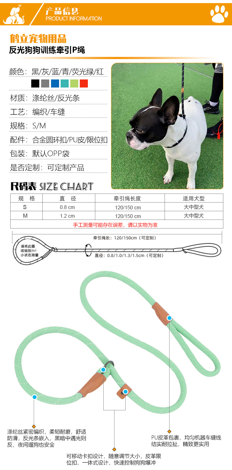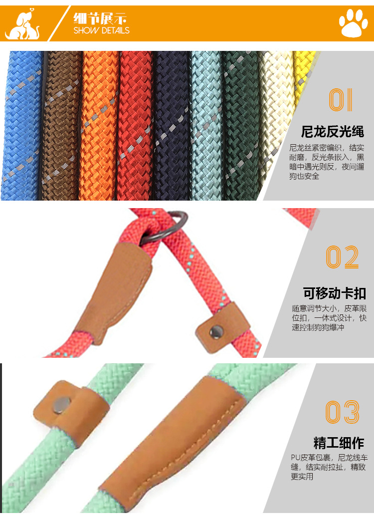 跨境热款涤纶织带反光狗绳子户外训练宠物狗狗牵引绳舒适不勒手 投诉