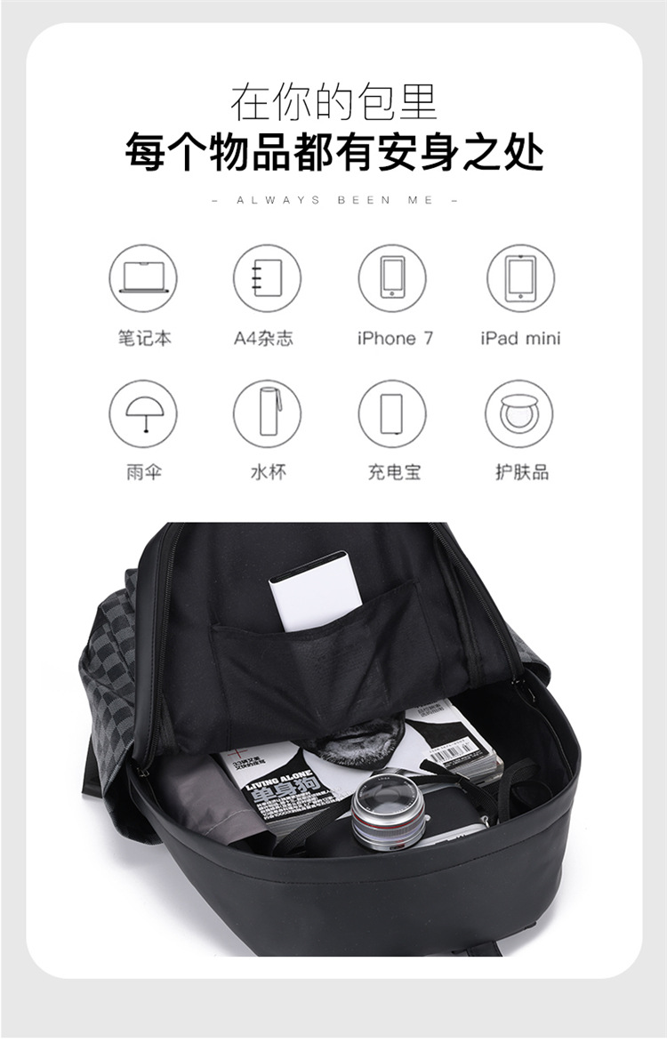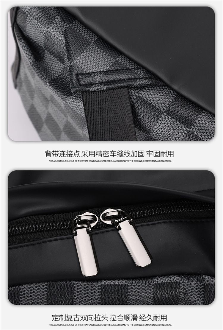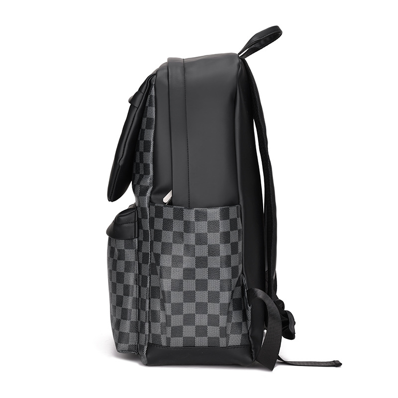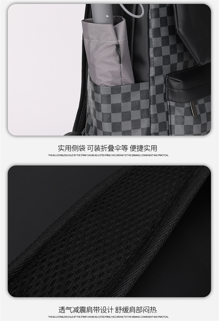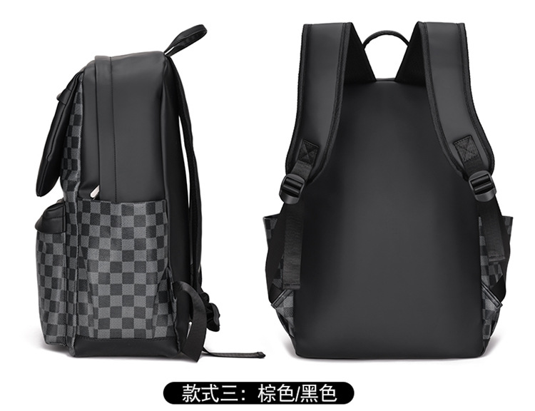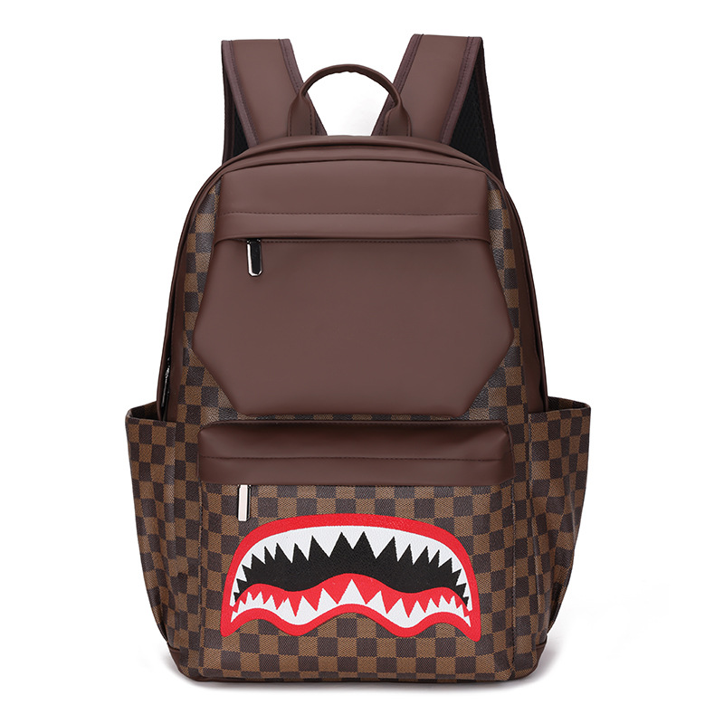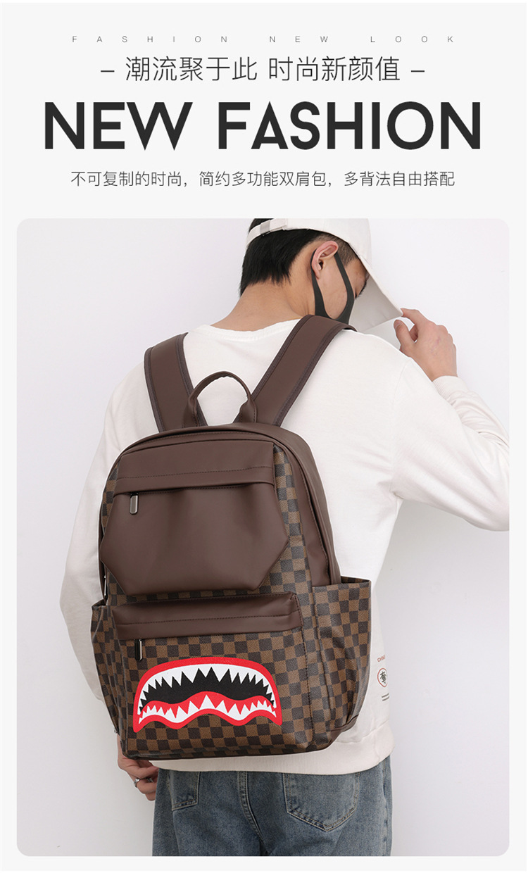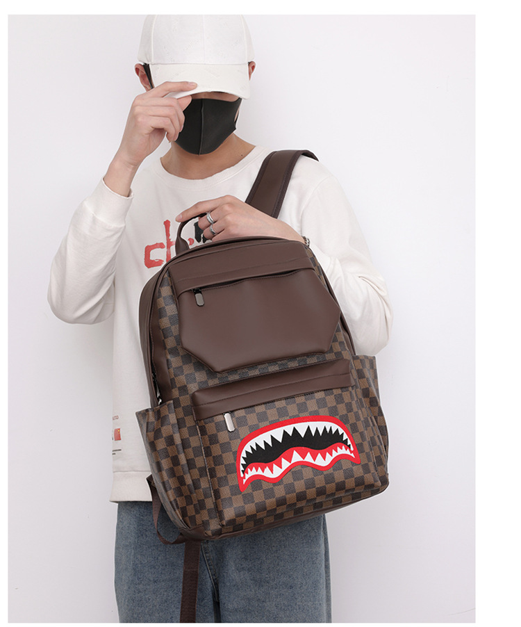 跨境潮流鲨鱼背包时尚经典格子男士双肩包户外休闲旅行收纳包男包