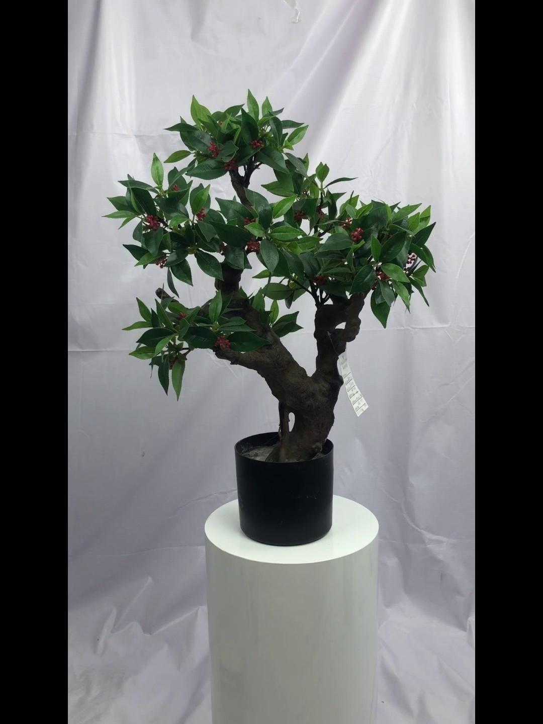 名称:窄基红规格:0.63米374叶55果包装:65*32*20/1棵祥瑞仿真植物厂是专业生产各类仿真植物厂家,厂房面积3200平方米。主要生产各类仿真植物(仿真树、花卉、迷你盆景、小盆栽、玻璃钢大树)等工艺品系列,仿真植物共有1000多款种类。? ? 公司主要经营各类仿真植物如:花、草、树、大树和各类仿真植物盆景、盆栽、工程,现场施工安装等业务。专业对各大商场、酒楼、家私城、西餐厅、美容美发厅、淋浴阁、店铺、博物馆、公园、植物园等室内外绿化设计和安装。仿真植物是高级装饰工艺品,经过印刷、定型、注塑、染色等复杂工序生产而成,花和叶色令你难辨真假。它易于打理而倍受青睐,是宾馆、酒店、写字楼及家具的理想装饰品。
