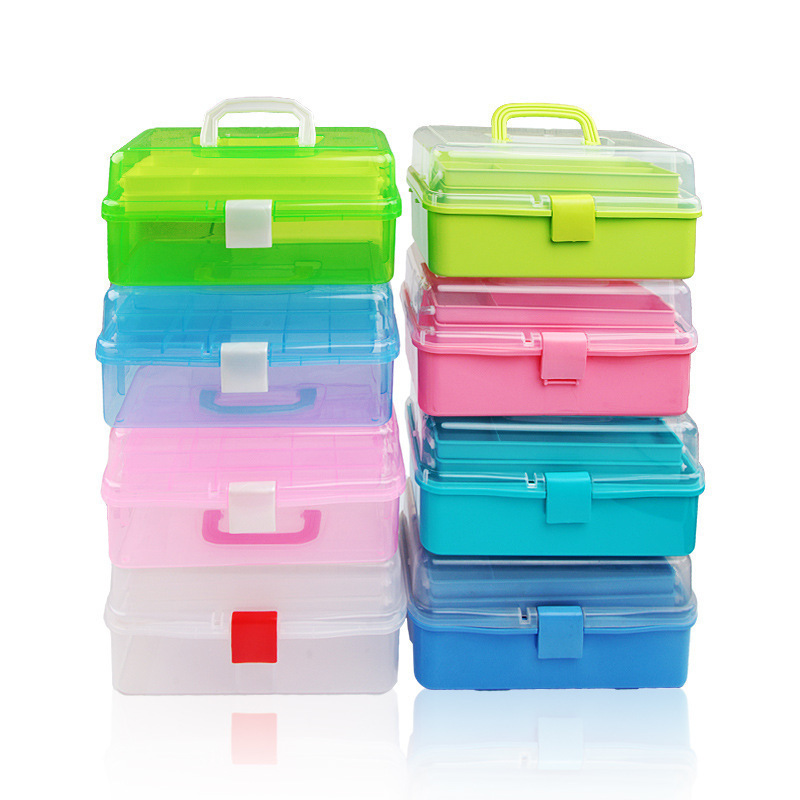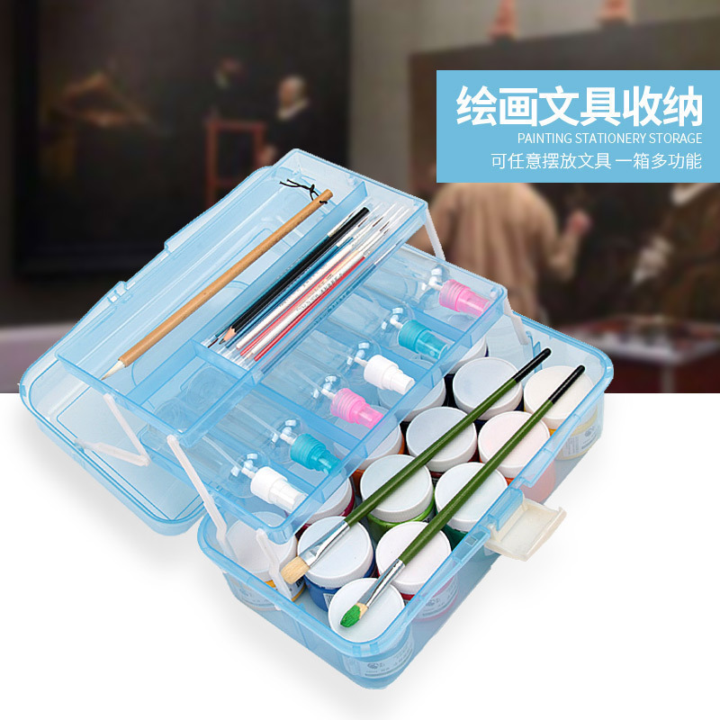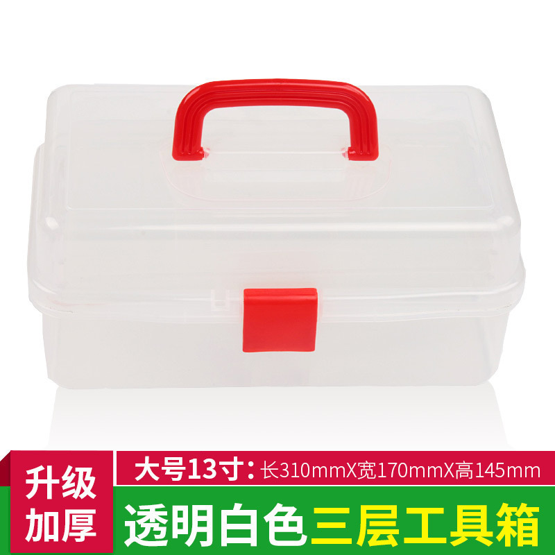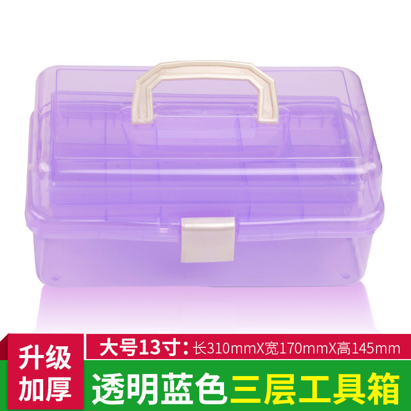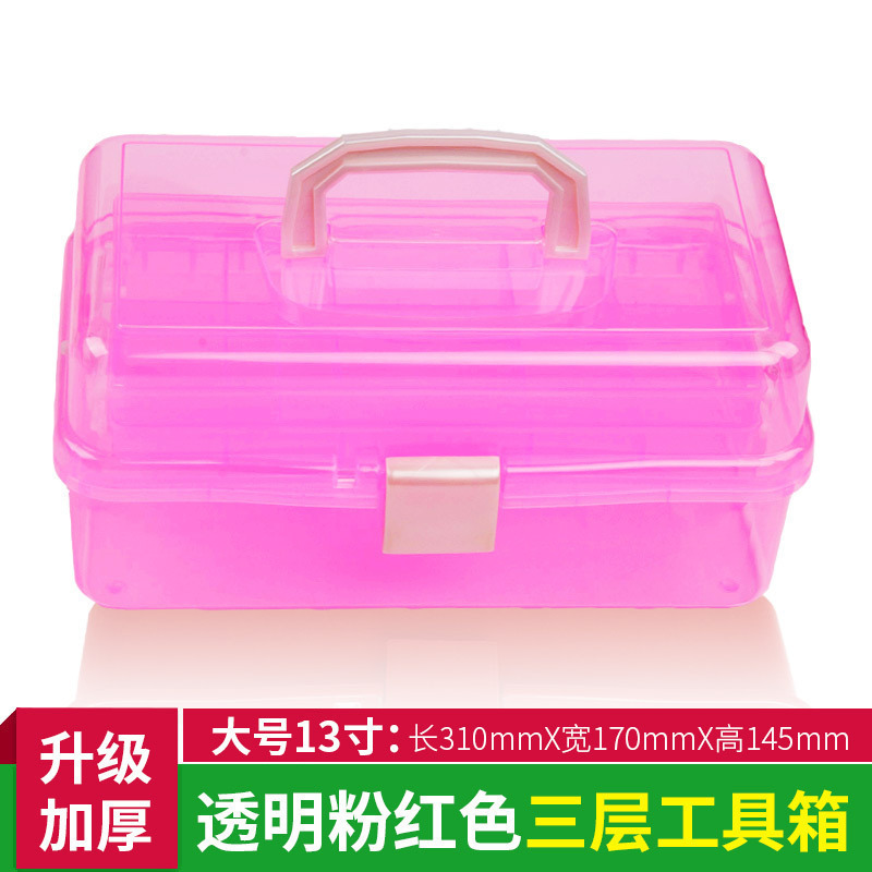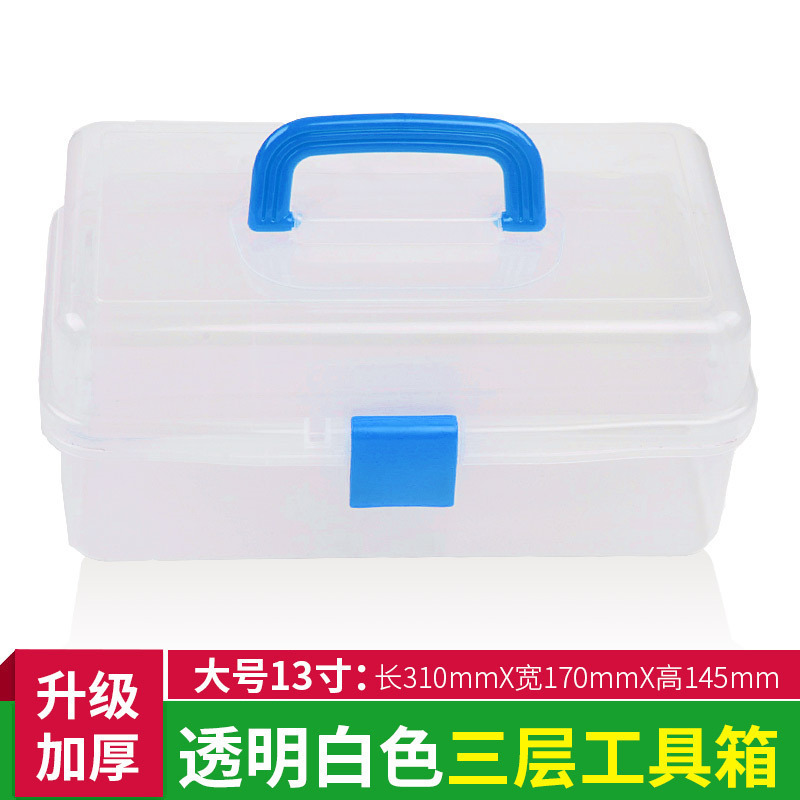 三层透明加厚塑料工具箱美甲五金手提工具箱学生美术用收纳盒