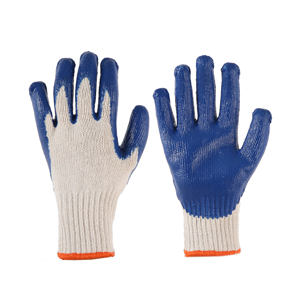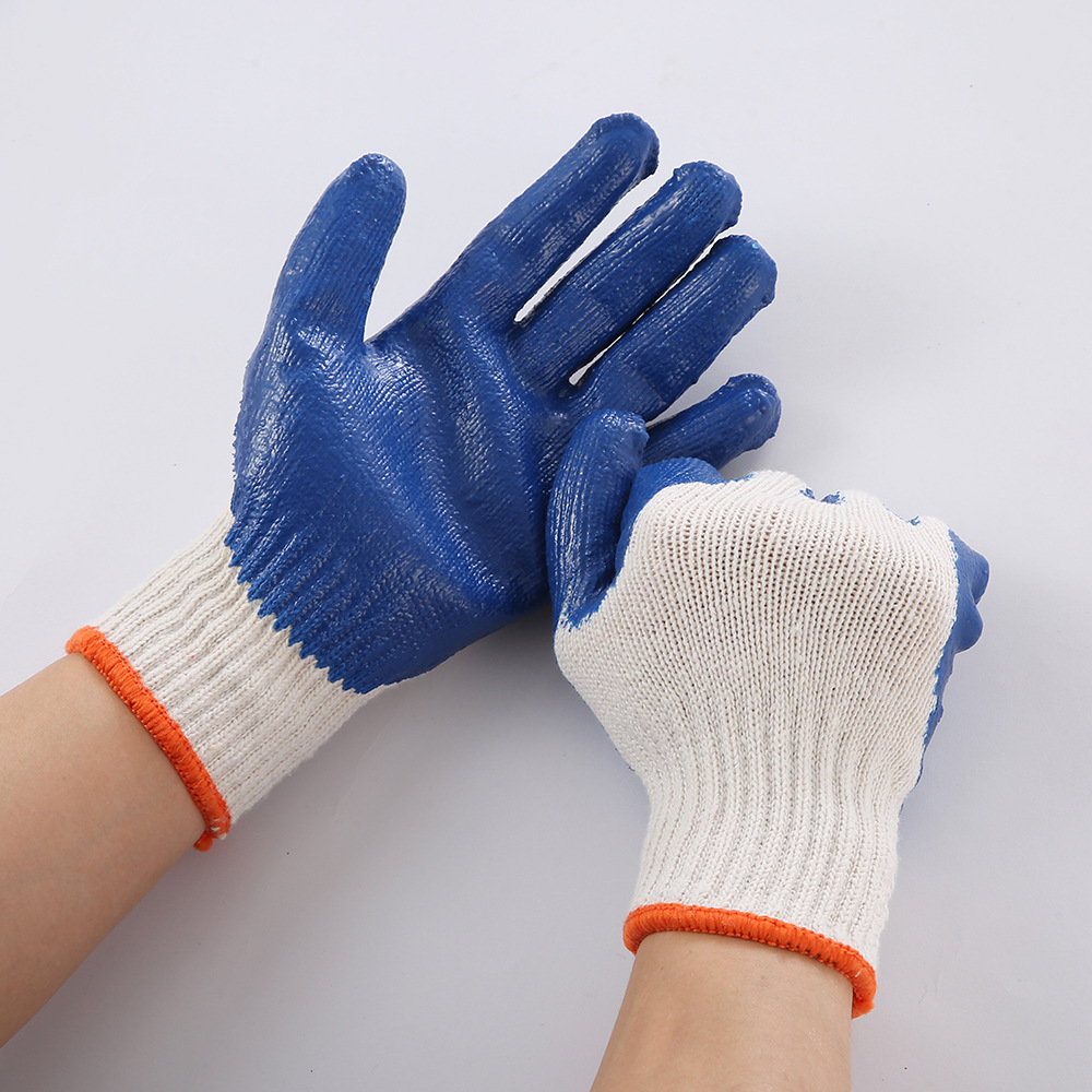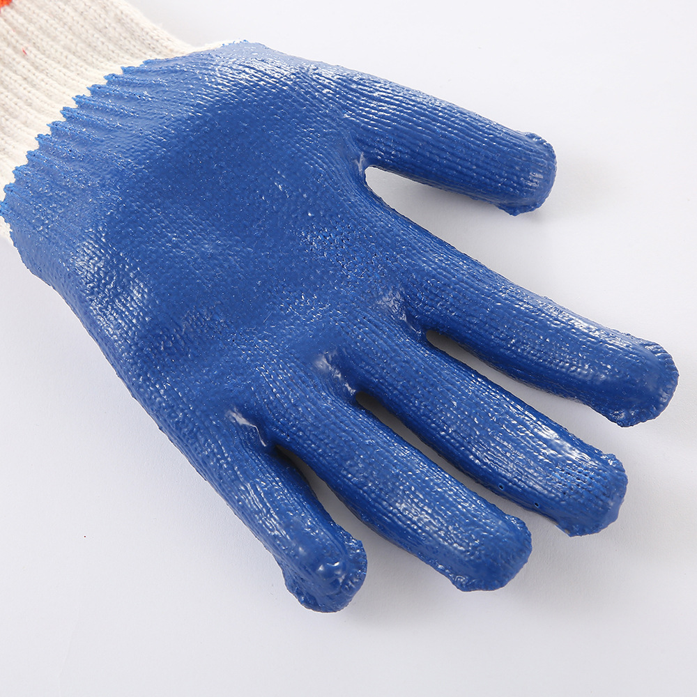 批发七针棉纱大连胶劳保手套保护针织耐磨防滑工厂工地耐用型手套