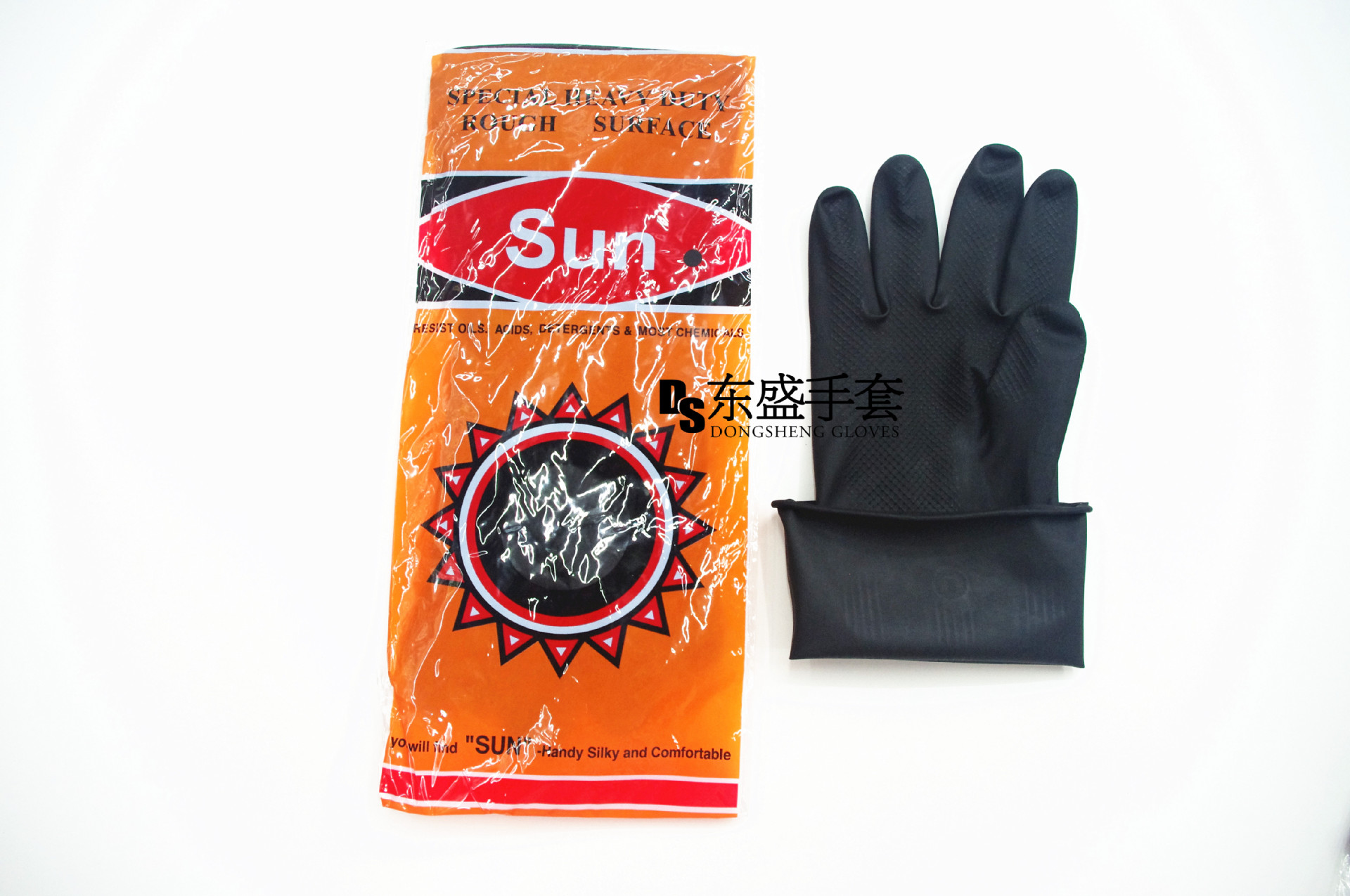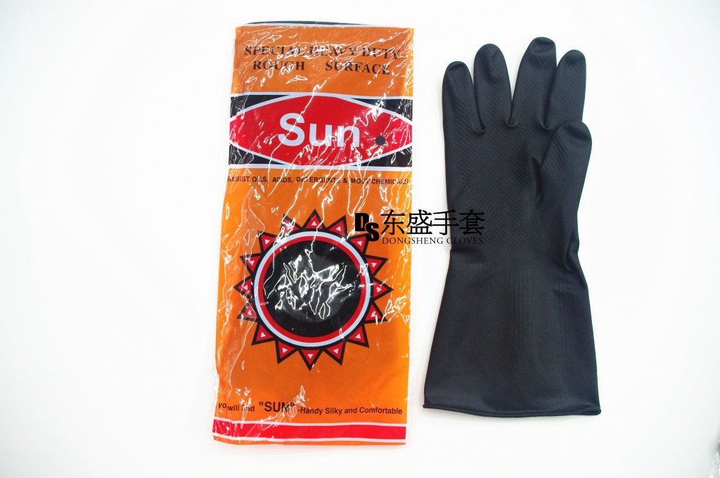 100克黑工业乳胶手套内外耐酸碱手套工业手套太阳花化工施工手套