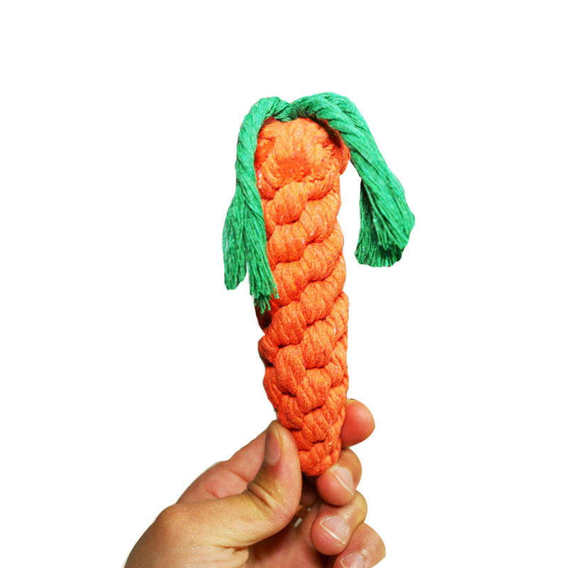 宠物胡萝卜宠物用品 宠物棉绳玩具 库存纯手工编织宠物磨牙绳批发
