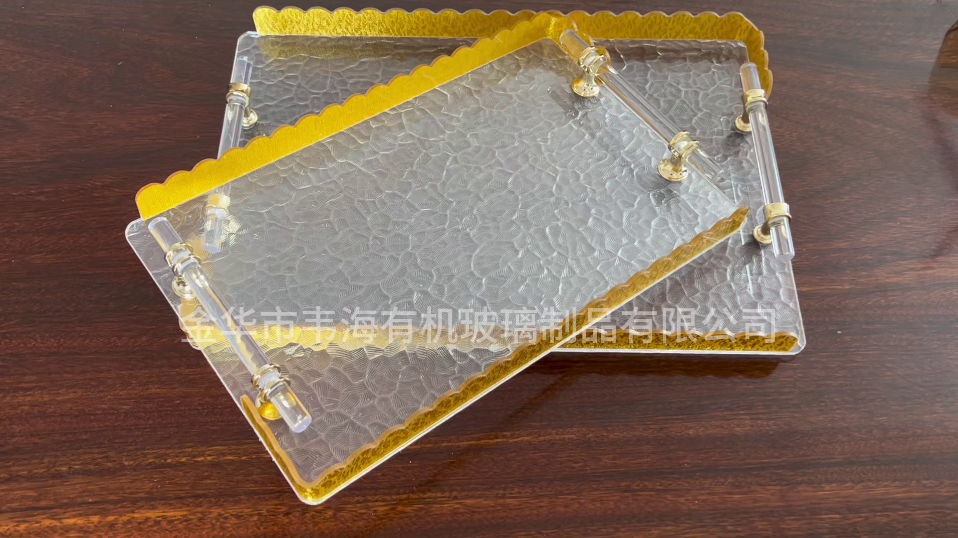 跨境热销亚克力金色花边托盘手柄托盘长方形水杯置物收纳托盘厂家 投诉