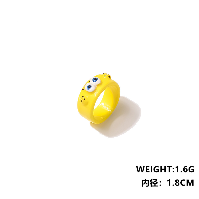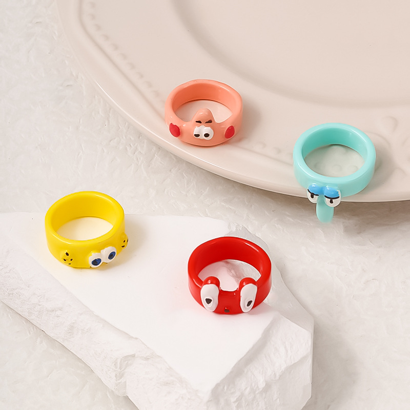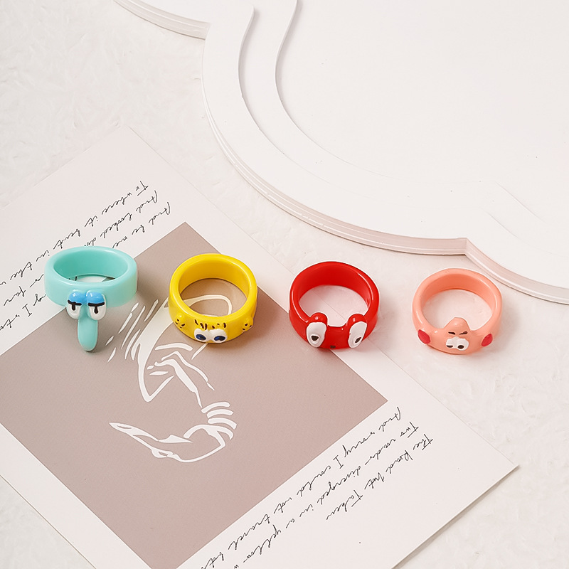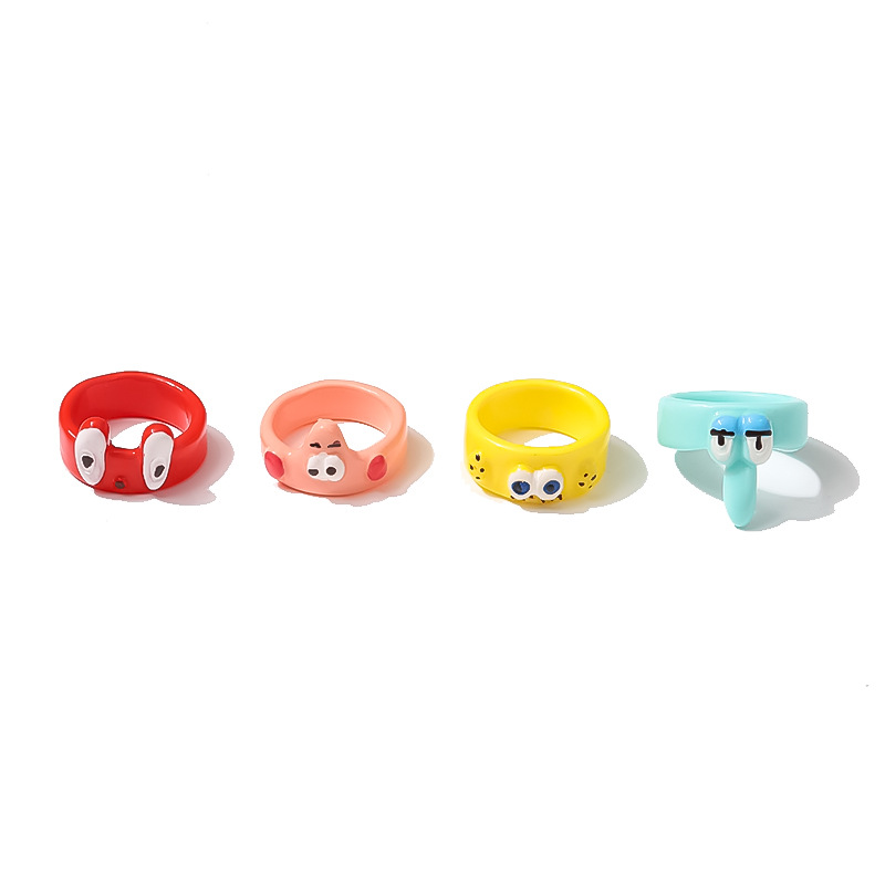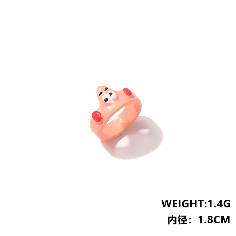小红书热销款卡通可爱亚克力戒指海绵宝宝 派大星 痞老板 章鱼哥