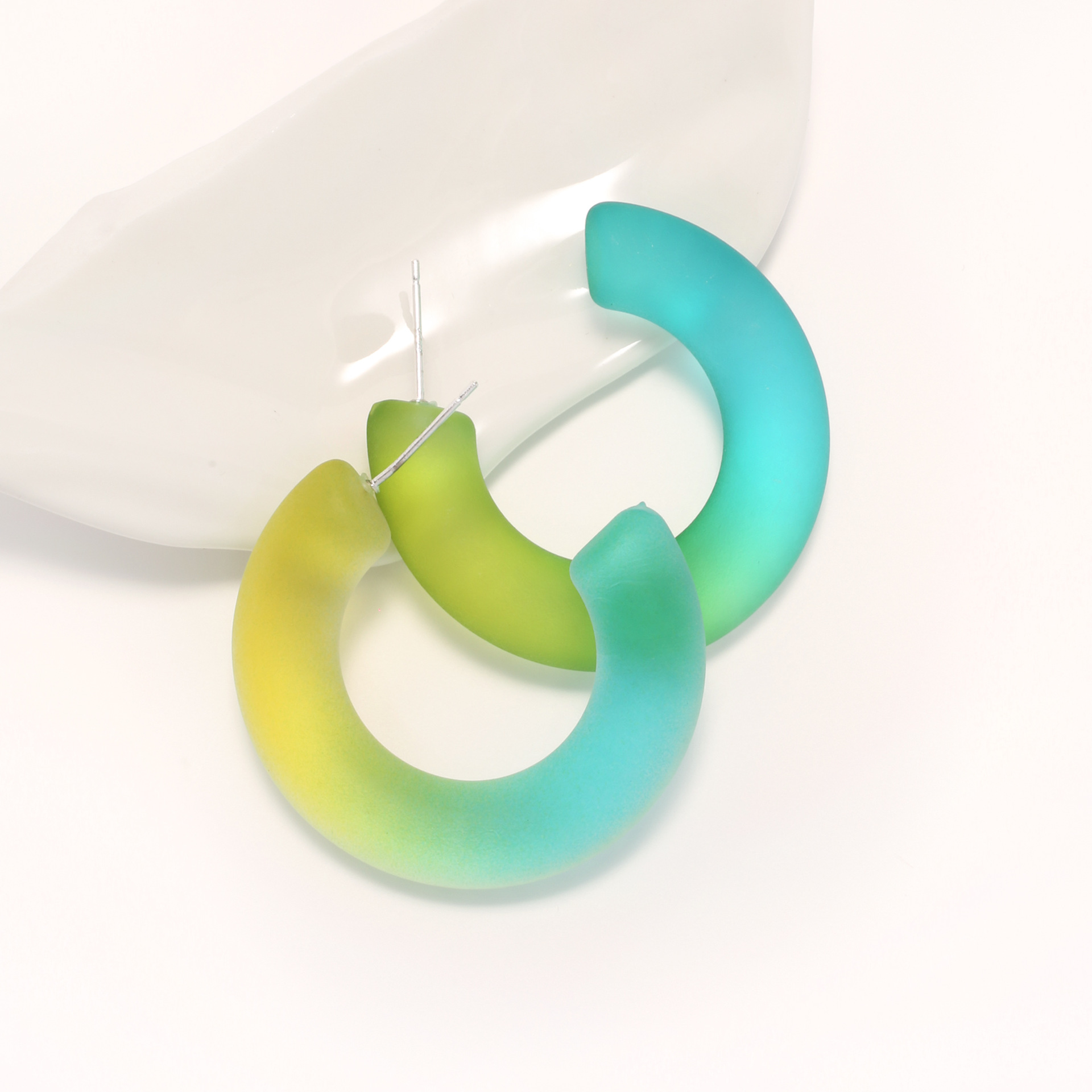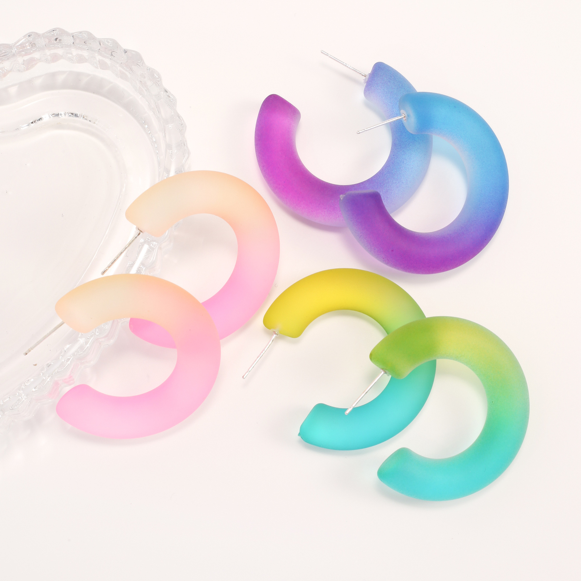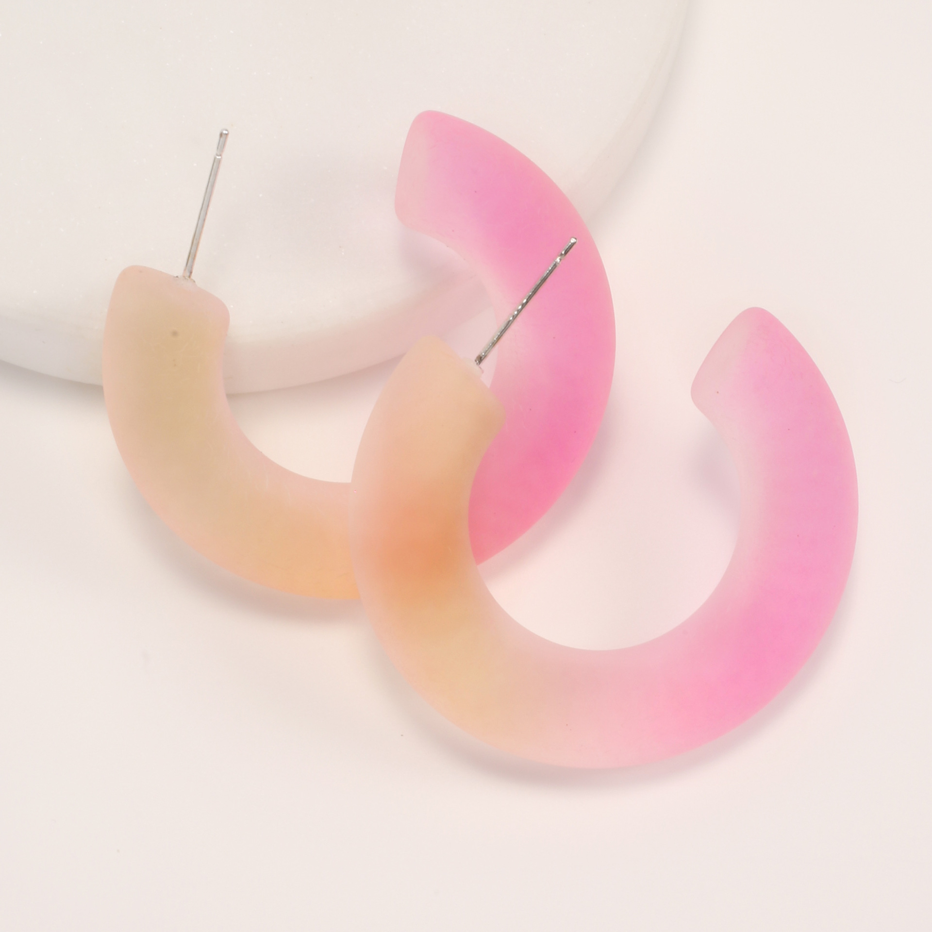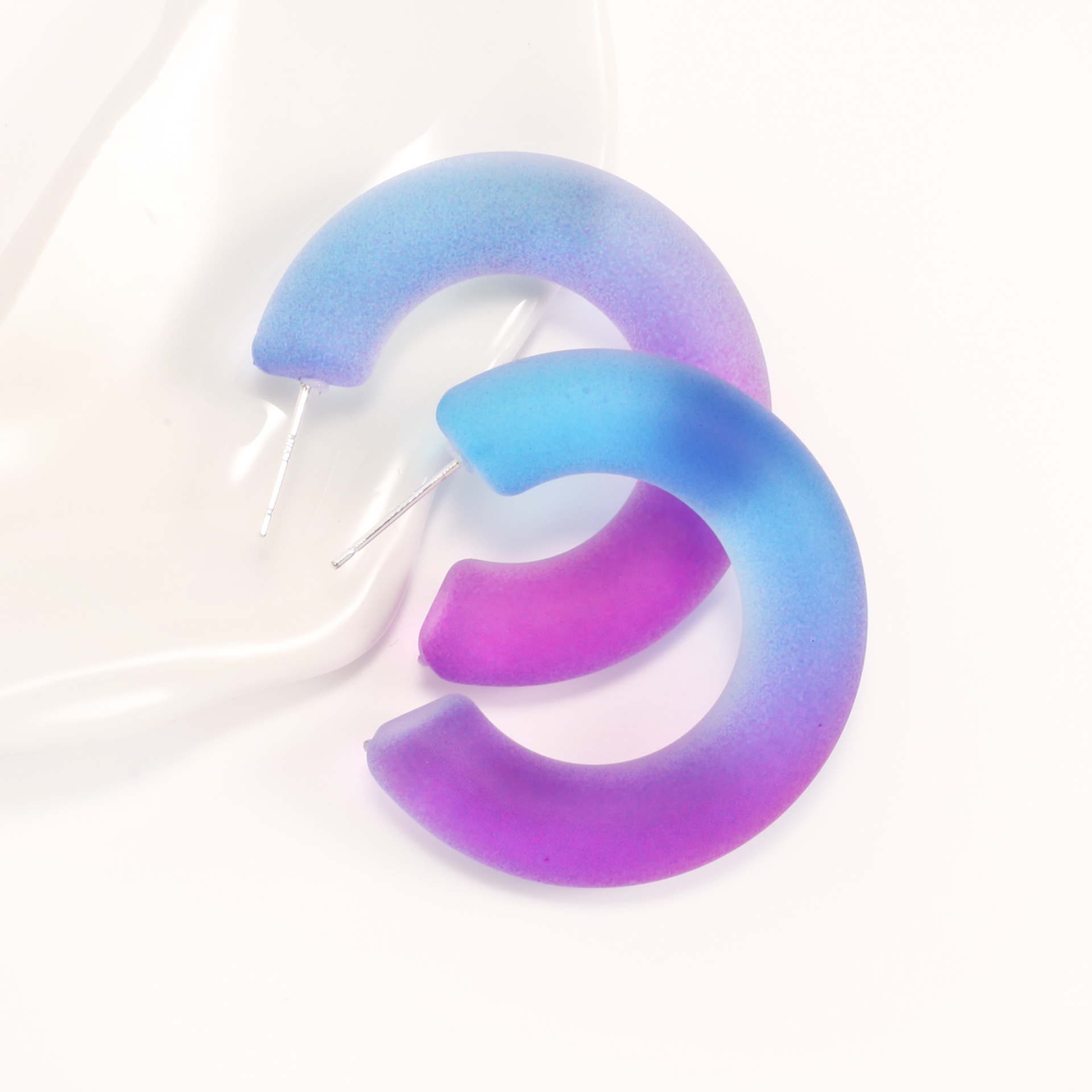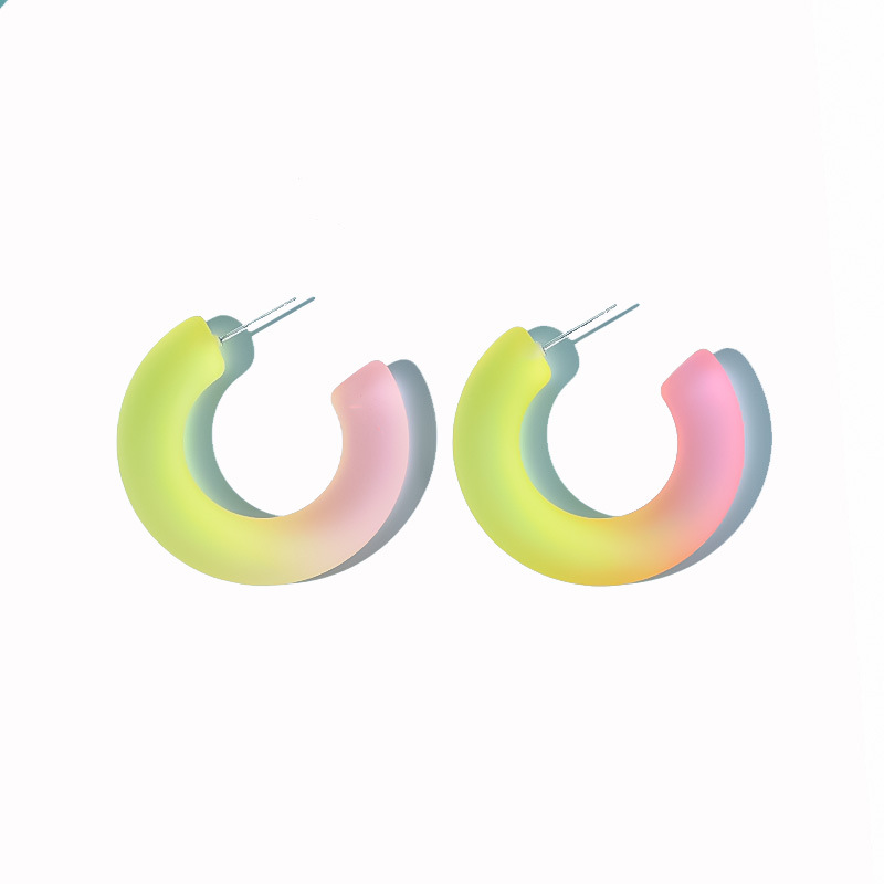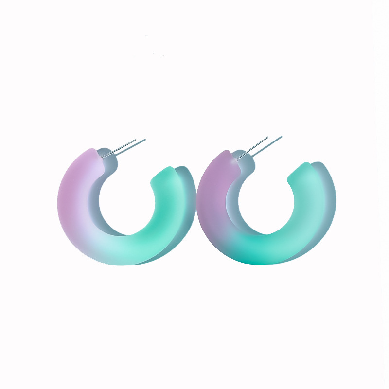 韩国气质简约小清新渐变果冻彩色树脂耳环 女百搭创意c形半圆耳钉 English | 投诉