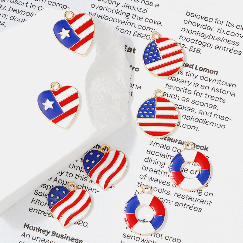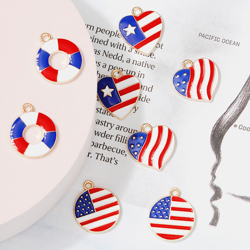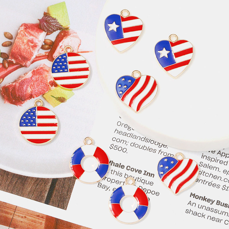 滴油镶钻合金小挂件吊坠饰品配件爱心圆形美国国旗韩版简约潮流 English | 投诉