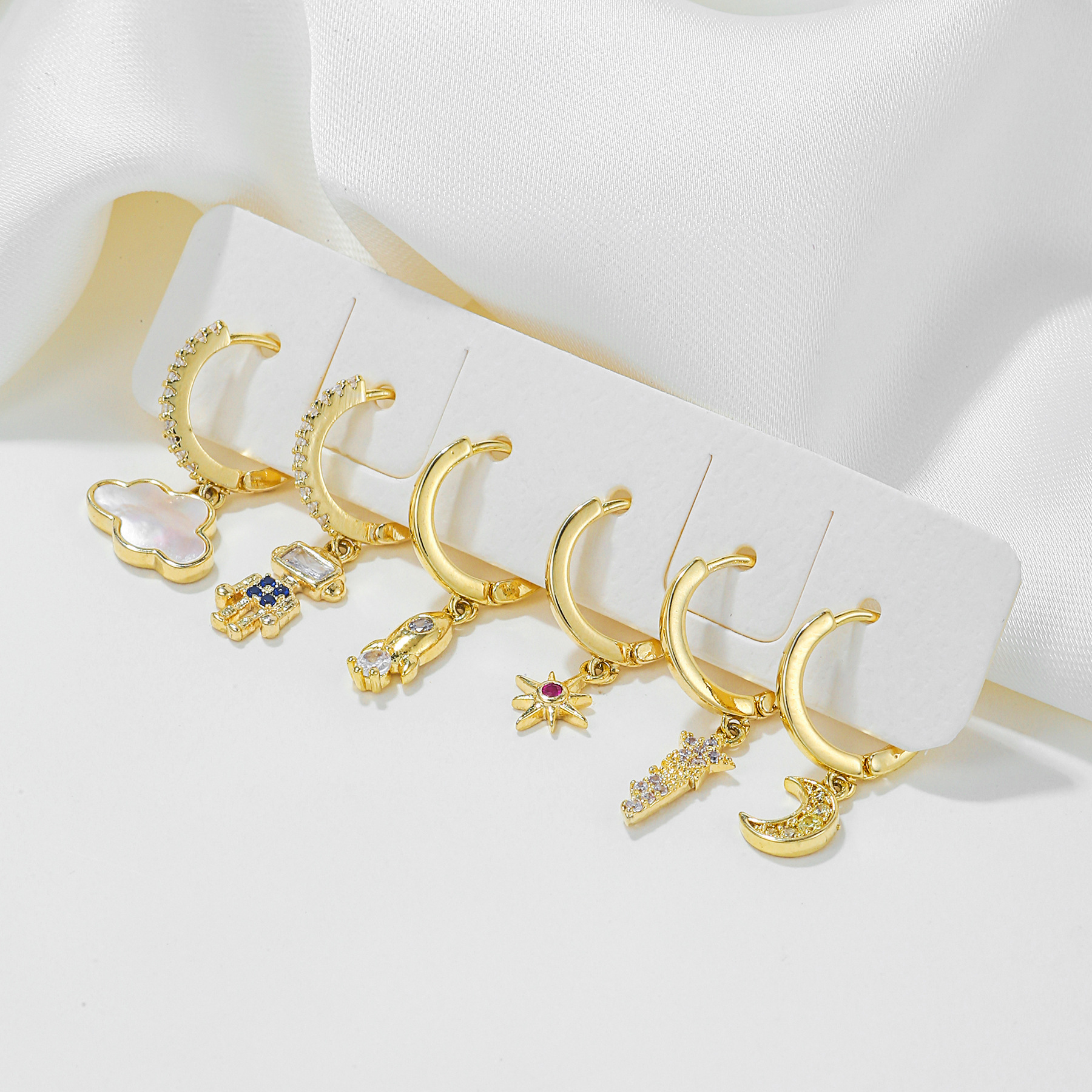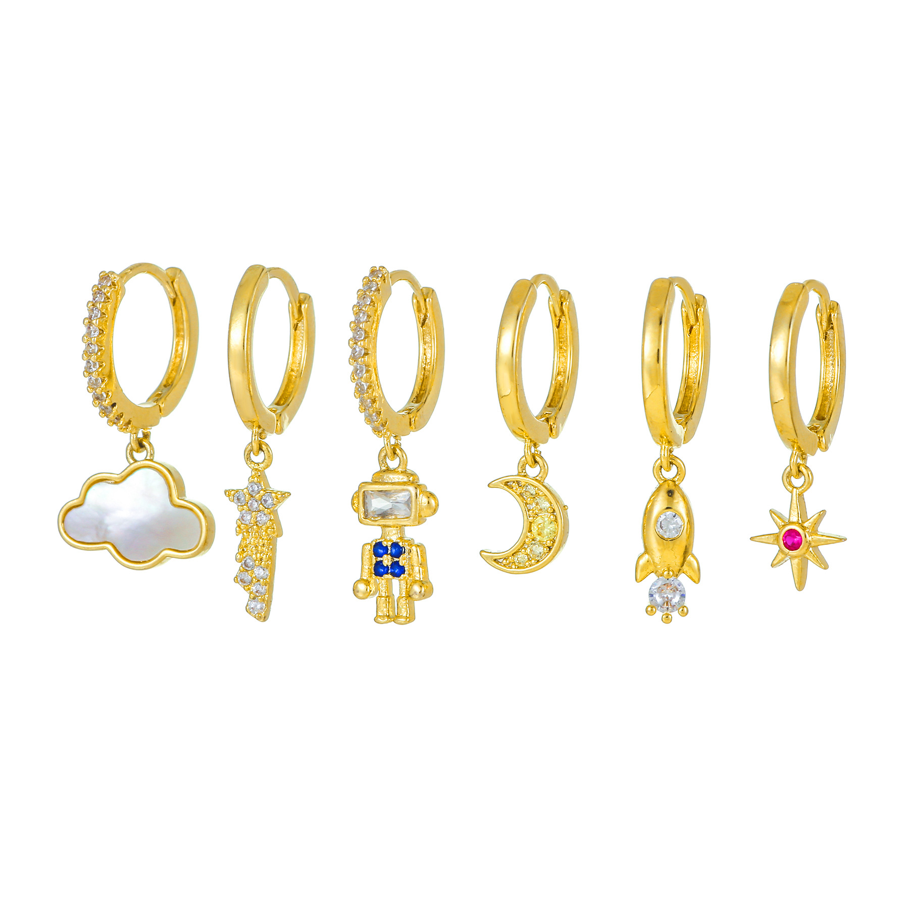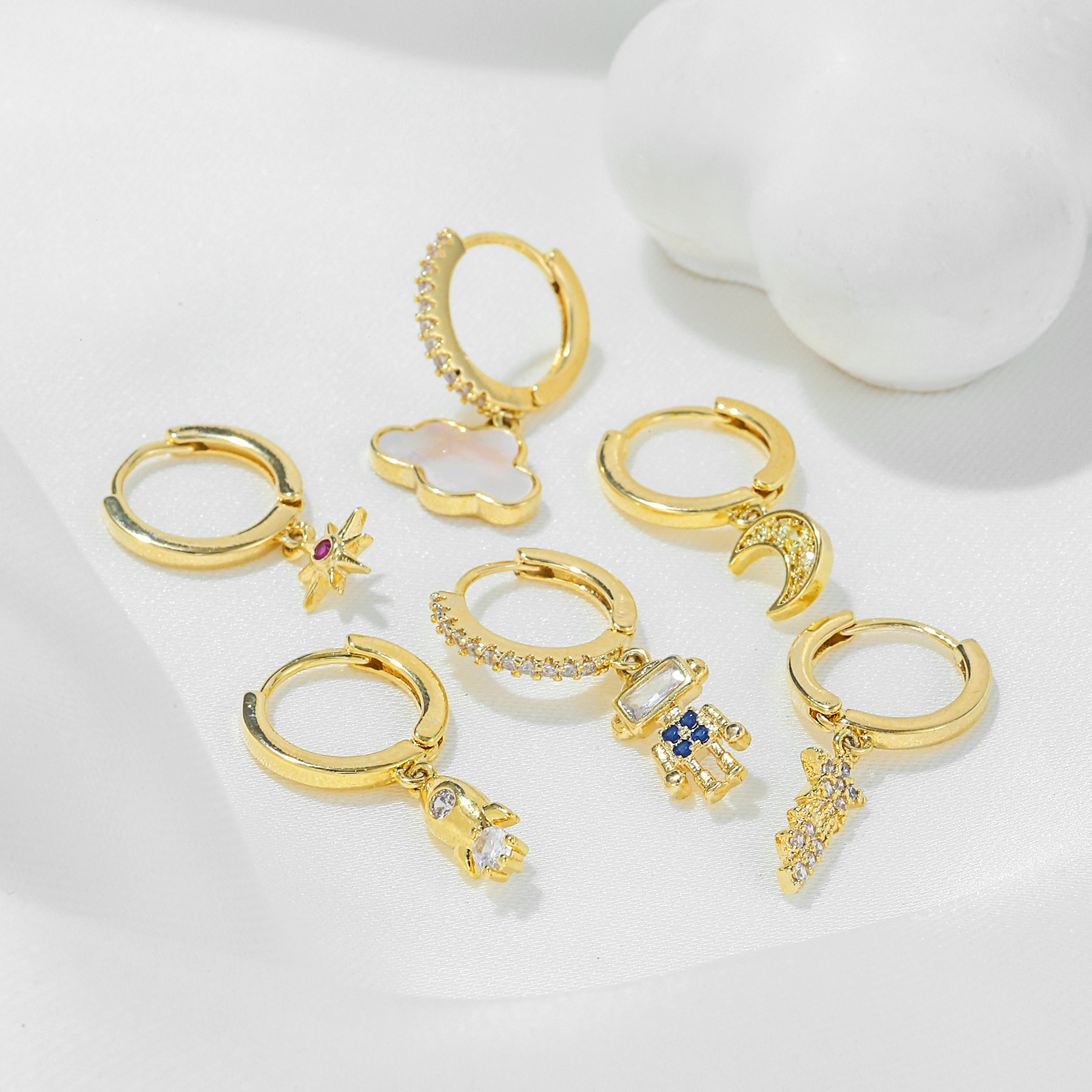 欧美跨境几何形耳环女微镶锆石星月时尚耳饰个性机器人六件套饰品 English | 投诉