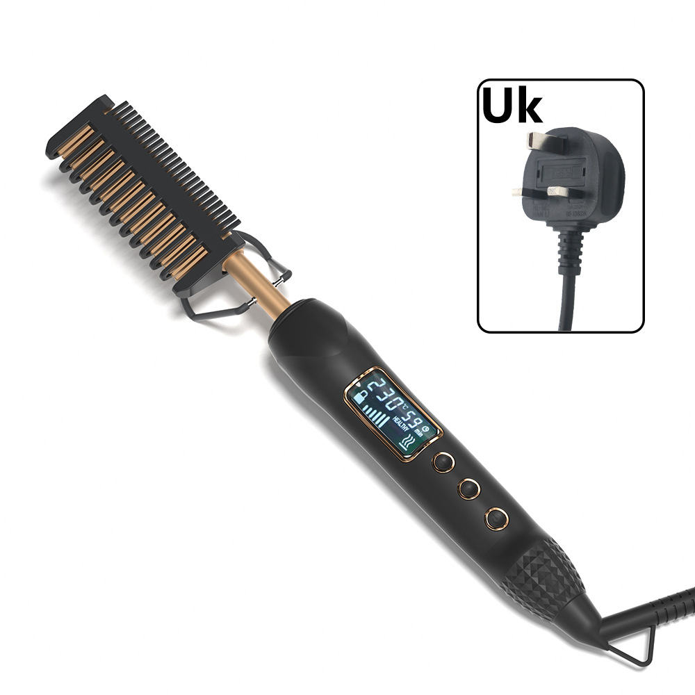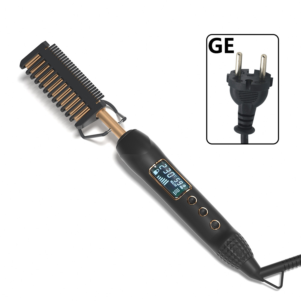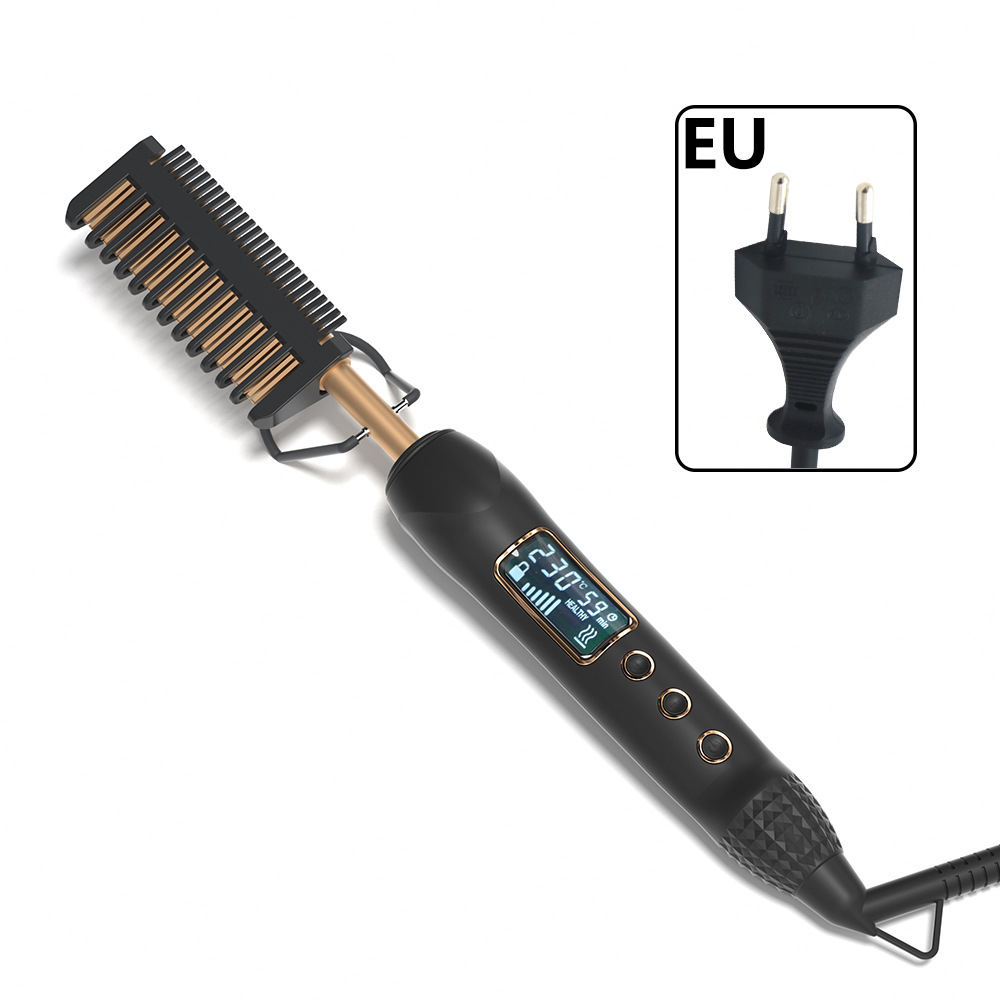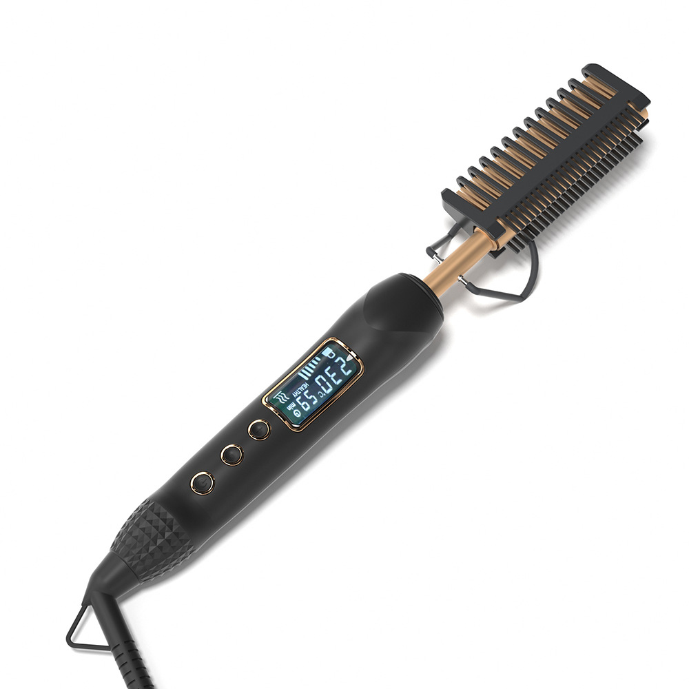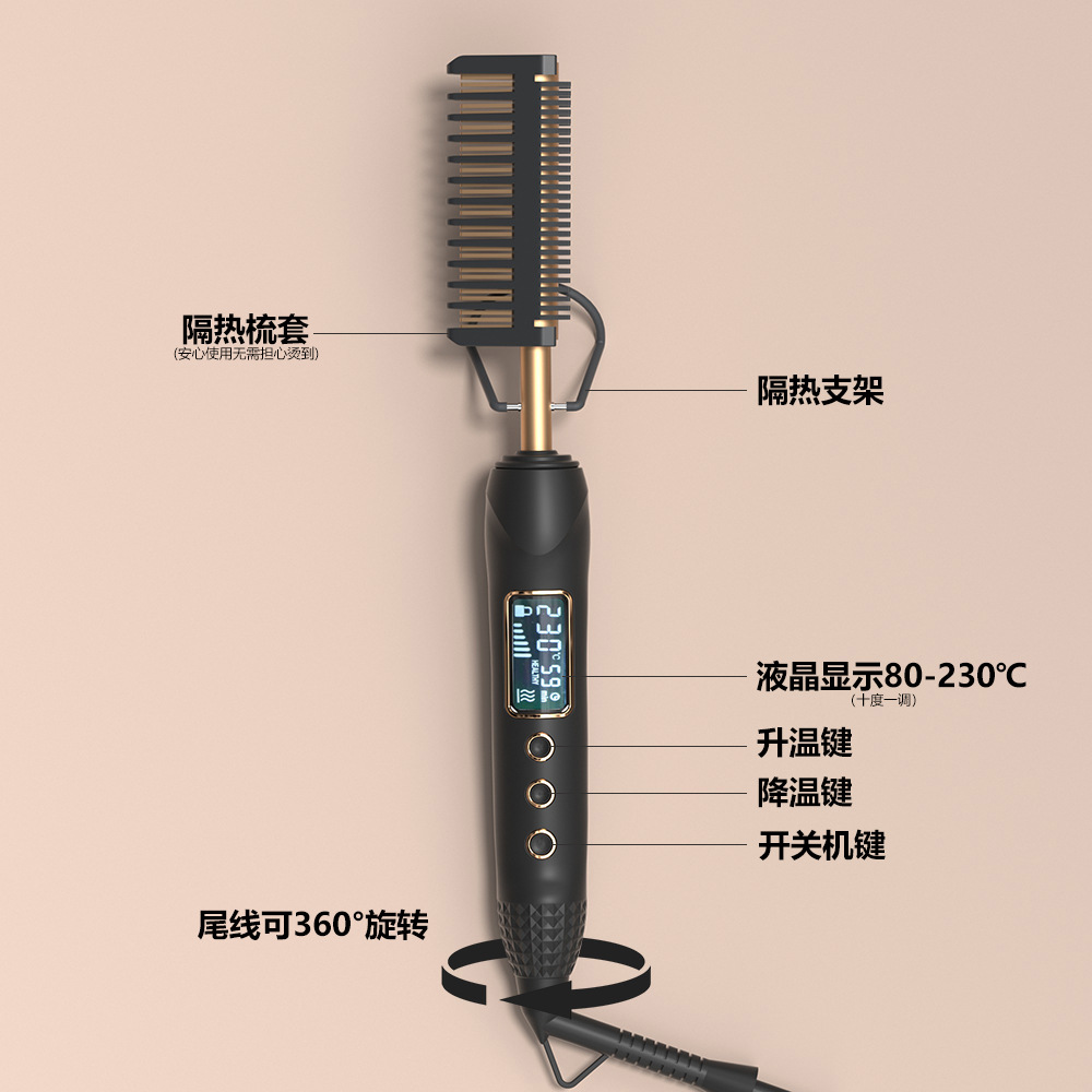 8603液晶电卷发梳 亚马逊直发梳卷发梳铜色电热梳LCD电梳子发热梳