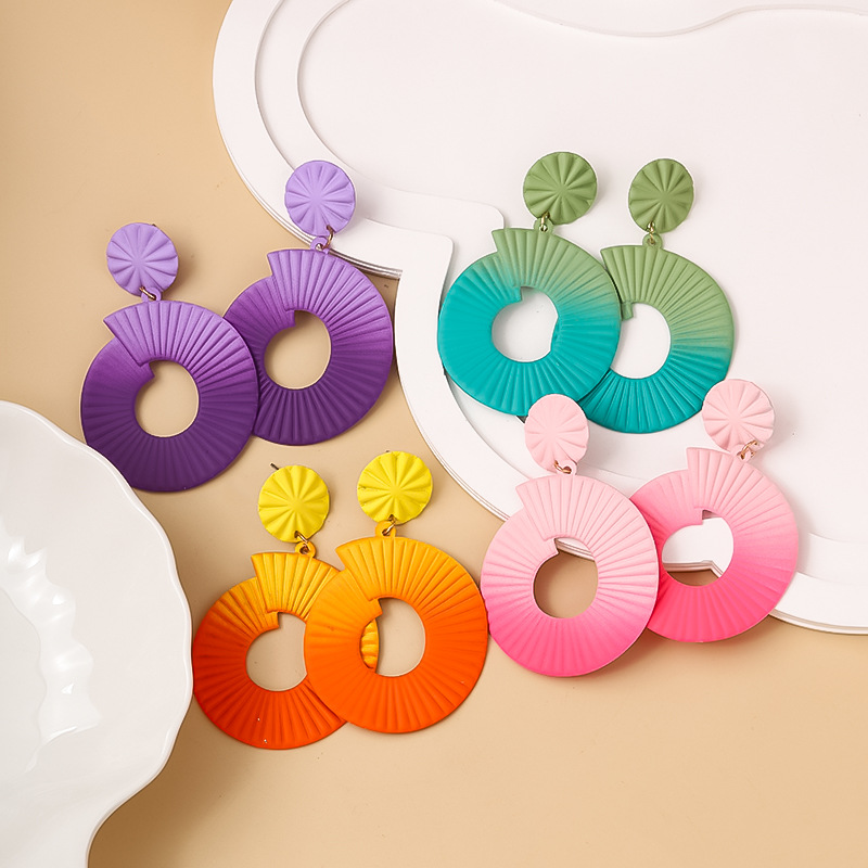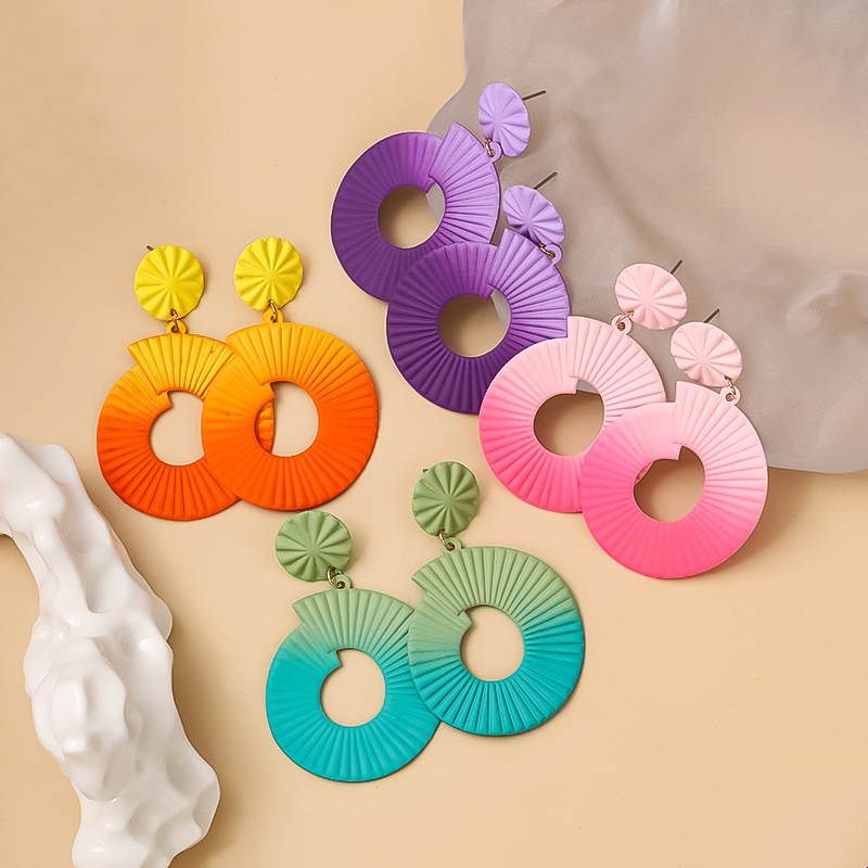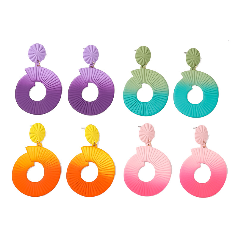 短视频外贸热销款 喷漆螺旋纹彩色椭圆夸张耳饰 工厂直营饰品批发 English | 投诉