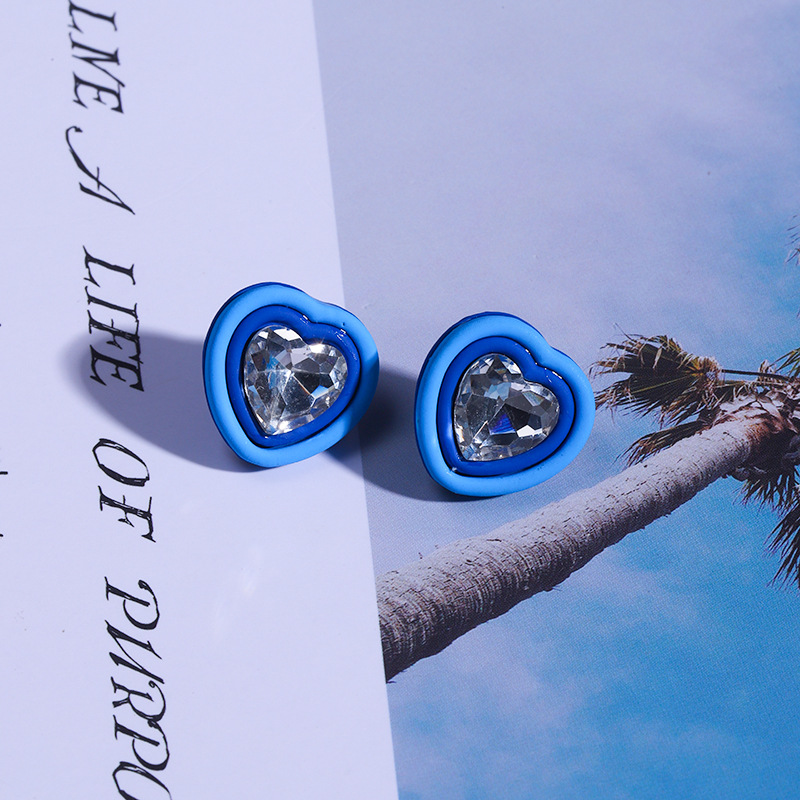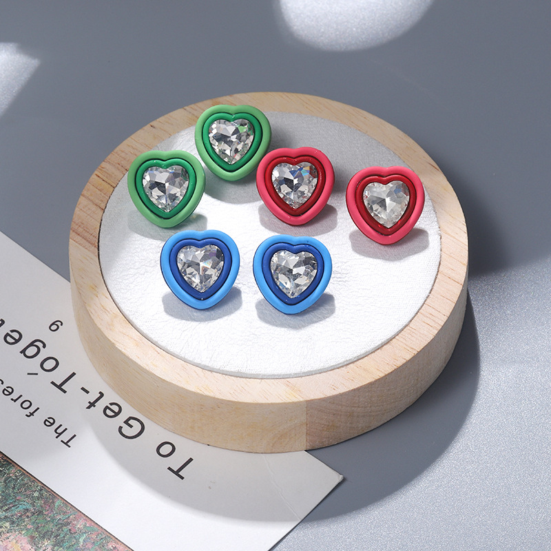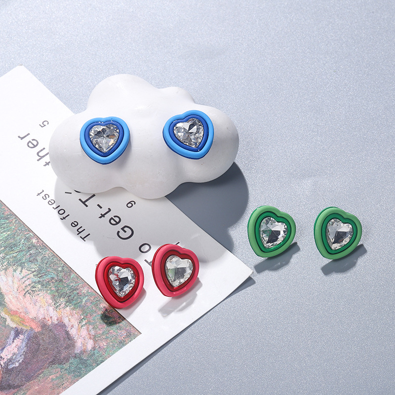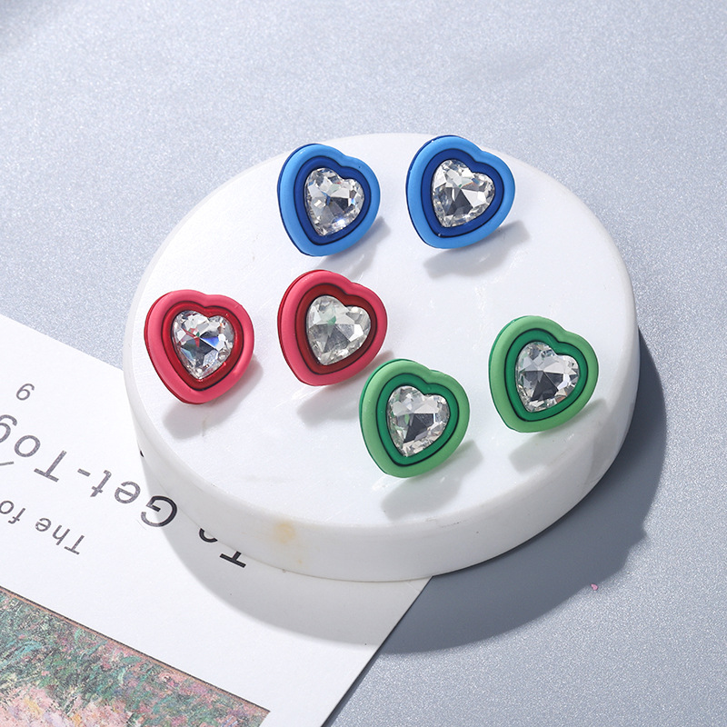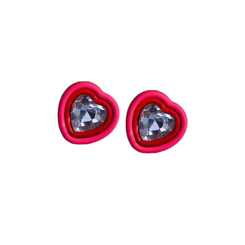 复古简约可爱甜美心形水钻耳钉时尚桃心耳饰简约大颗爱心镶钻耳环 English | 投诉