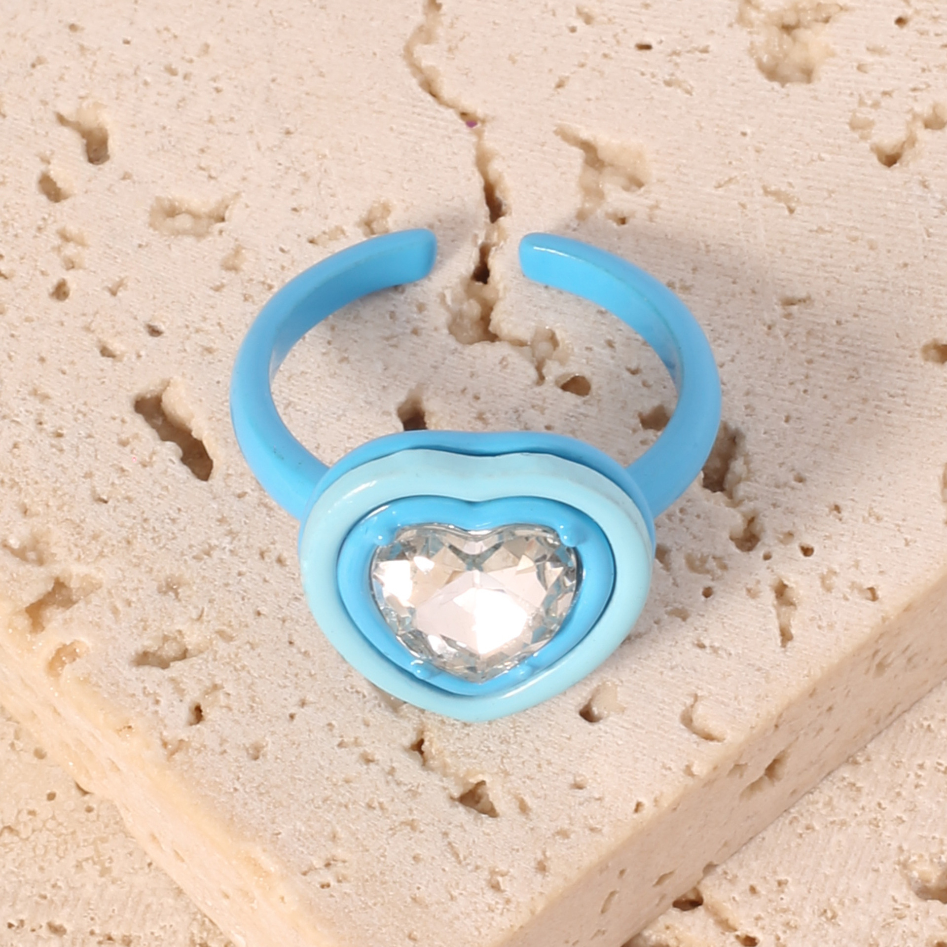 潮时尚个性关节戒爱心水钻树脂戒指 女开口可调节甜美少女食指戒 English | 投诉