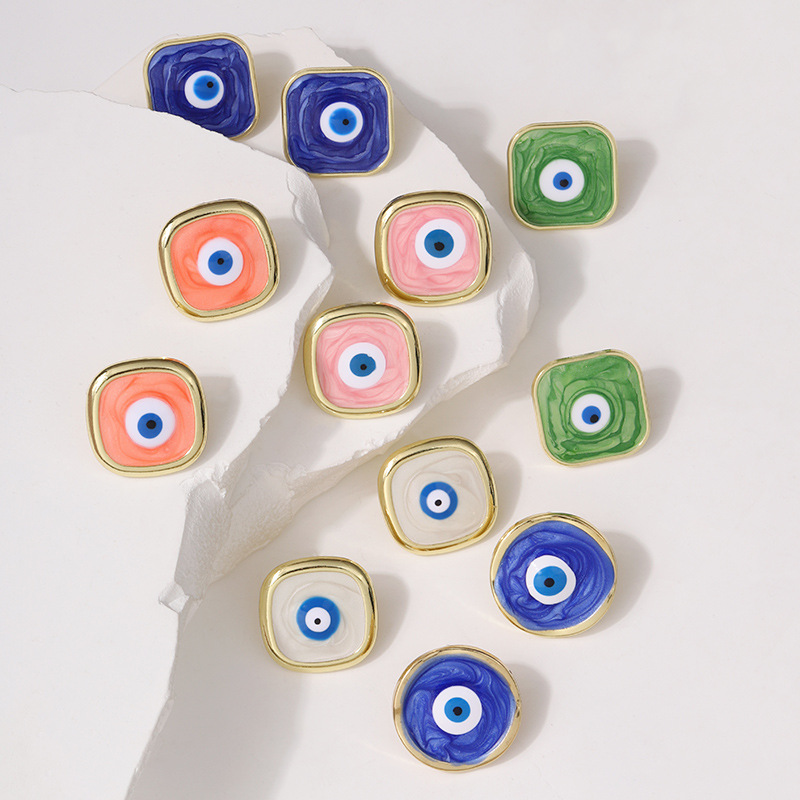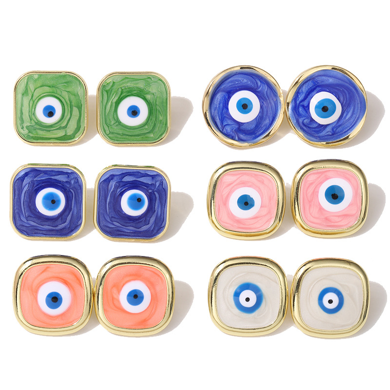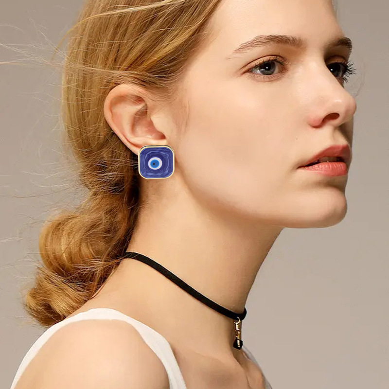 新款欧美恶魔之眼正方形耳钉 滴油潮流女款轻奢简约耳饰耳环批发 English | 投诉