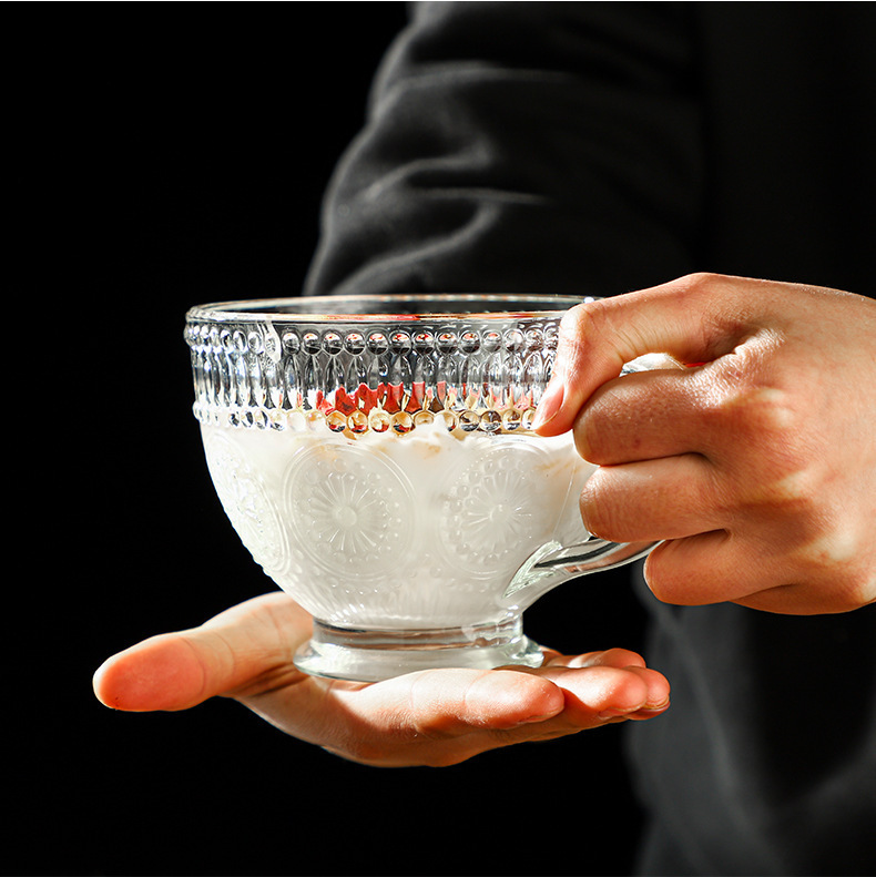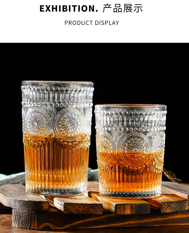 复古浮雕金边玻璃杯太阳花水杯 法式冷饮杯奶茶店 English | 投诉
