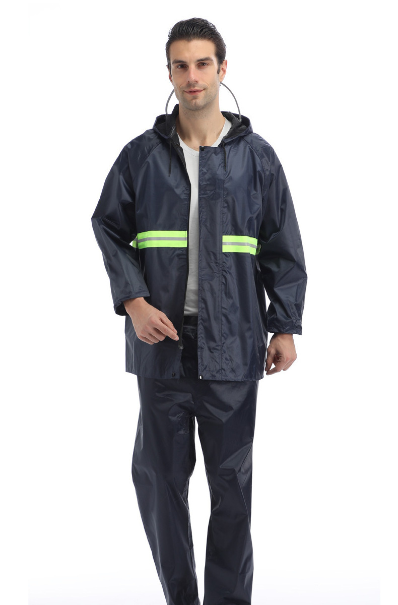 单层加厚牛津布反光套服批发成人雨衣雨裤套装户外骑行工地雨衣