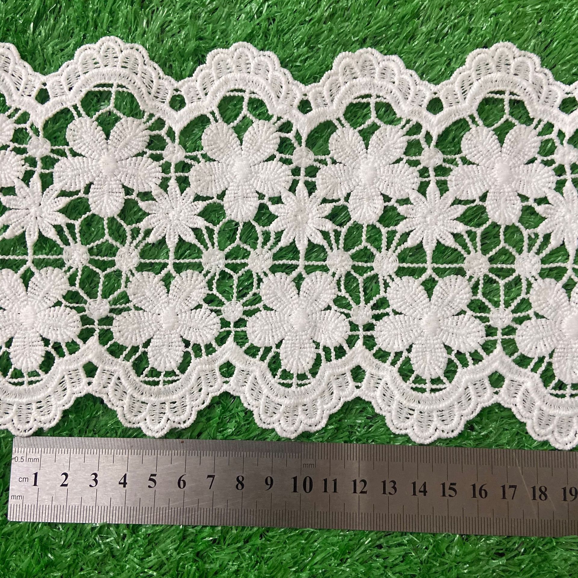 • 鑫达花边生产销售花边,水溶花边,蕾丝花边,刺绣花边,服装辅料,涤纶花边,牛奶丝花边,条码,满幅等,欢迎新老顾客前来选购!