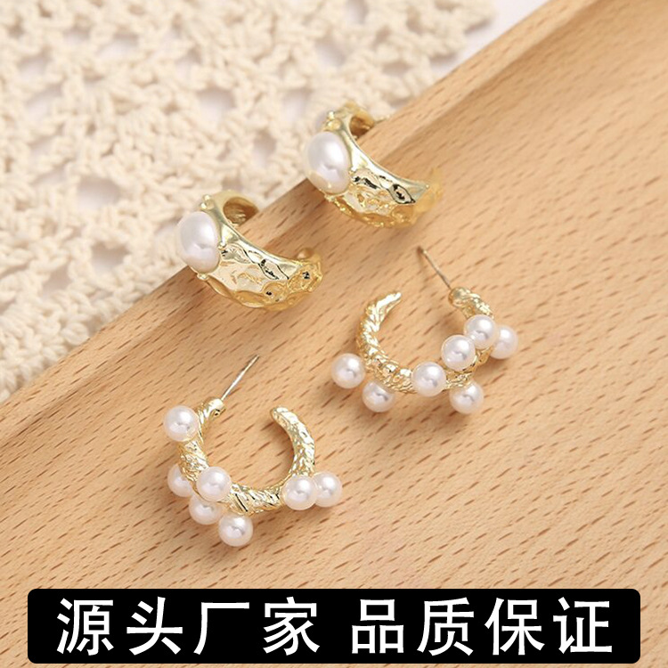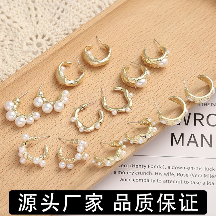 欧美跨境新品ins金属珍珠镶嵌几何耳环时尚设计耳环耳饰厂家直销 English | 投诉
