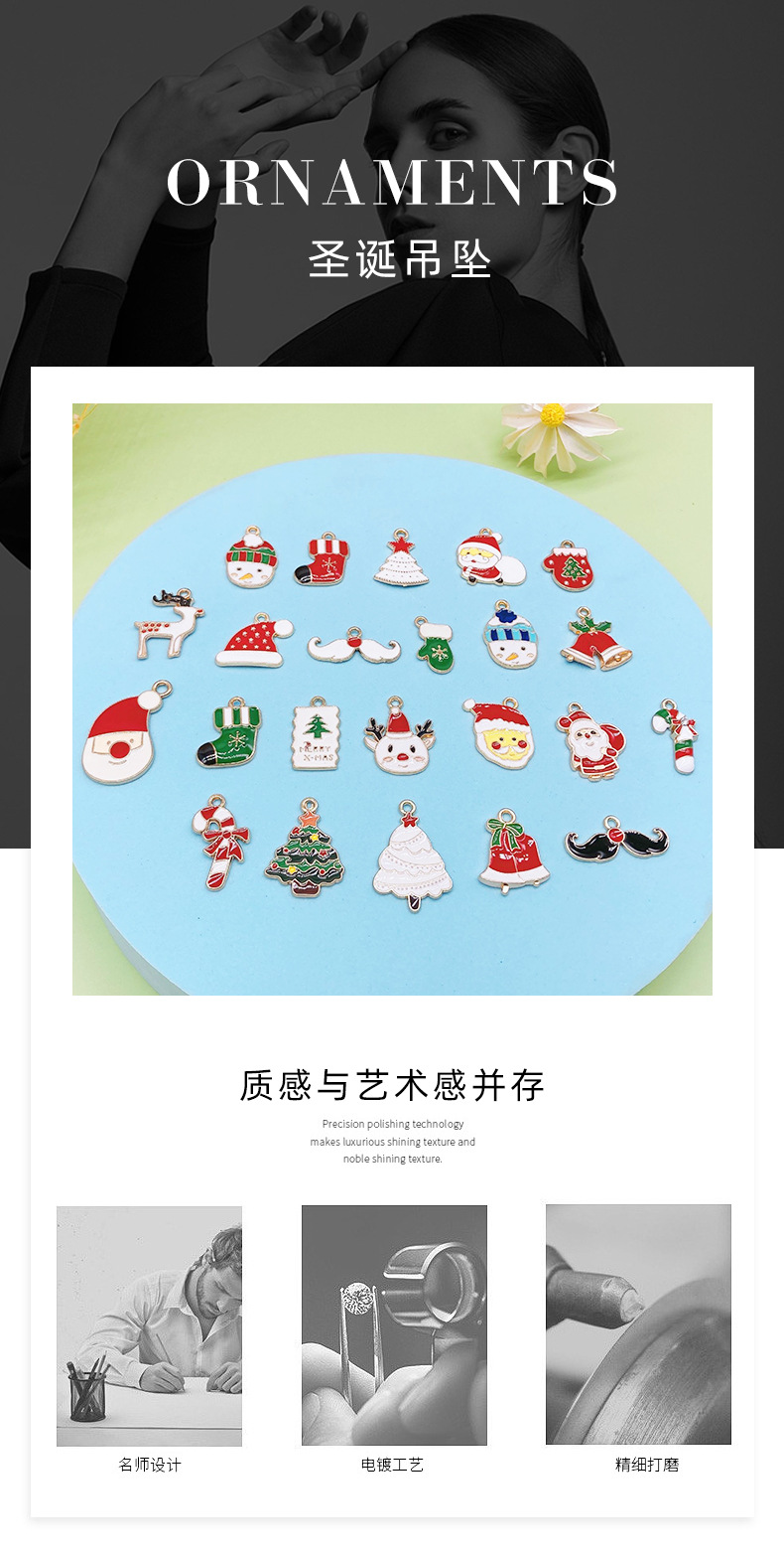 圣诞风滴油合金吊坠diy饰品配件 圣诞老人雪人铃铛麋鹿手链挂件潮 English | 投诉