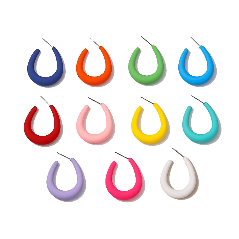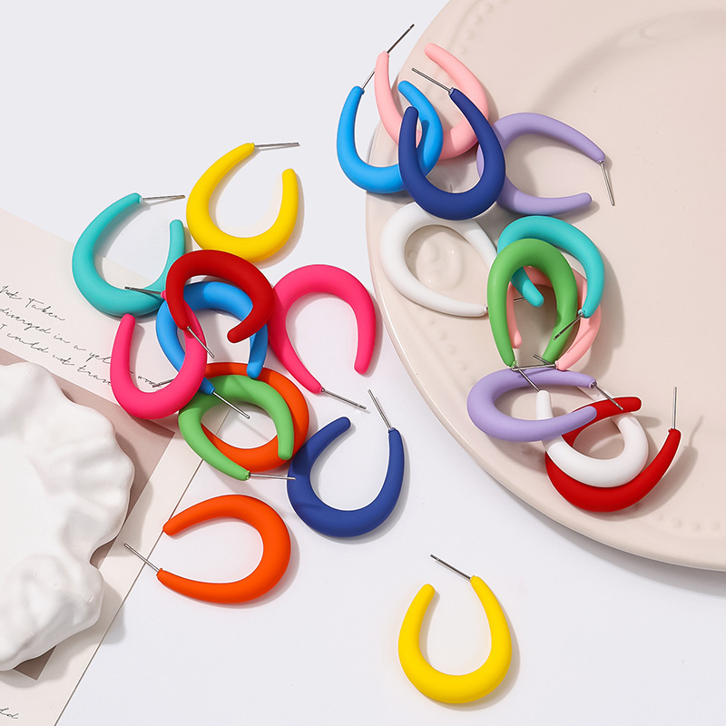 爆款简约单品亚克力手感漆C形几何耳环糖果色系耳饰女工厂直销 English | 投诉