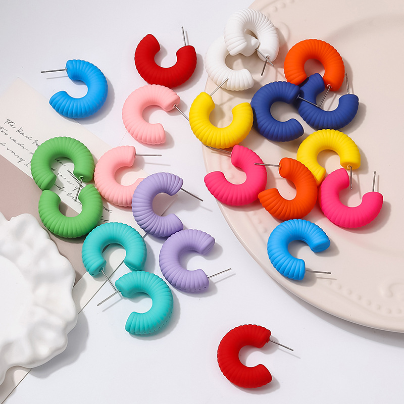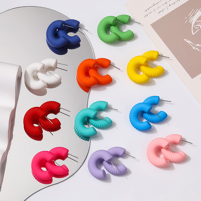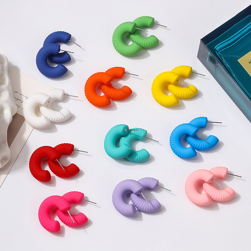 外贸热销款简约潮流螺旋纹亚克力手感漆耳饰女厂家直销饰品批发 English | 投诉