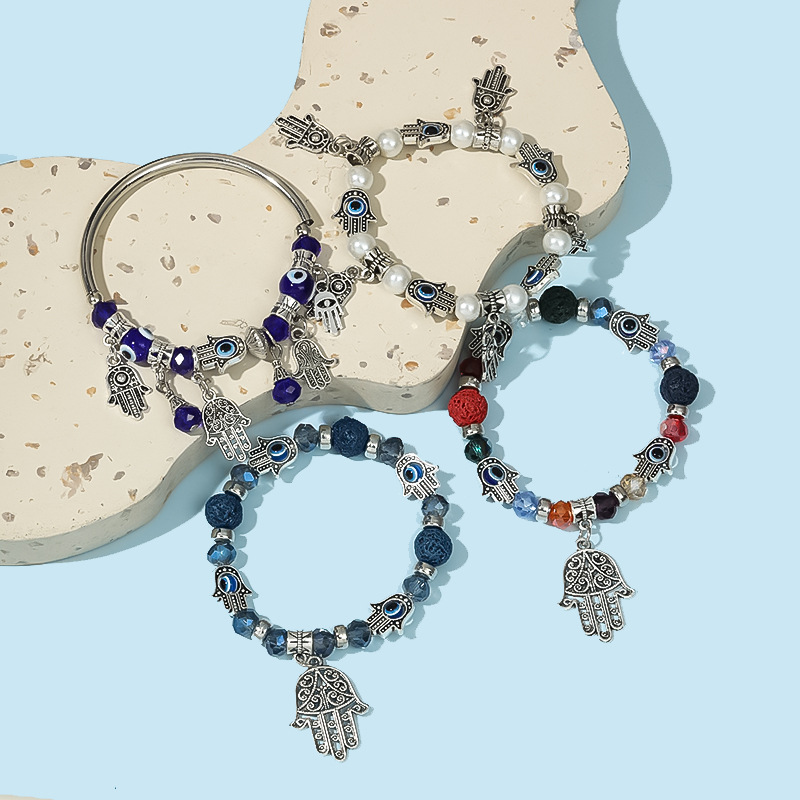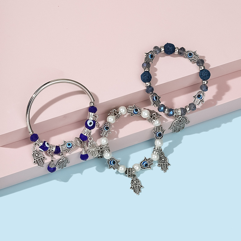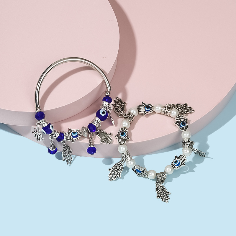 厂家直销欧美跨境新品蓝色恶魔之眼睛法蒂玛之手串珠手链套装饰品