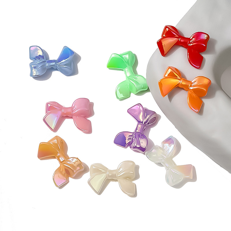 可爱蝴蝶结亚克力UV镀彩实色竖孔亮面蝴蝶结串珠DIY饰品配件批发 English | 投诉