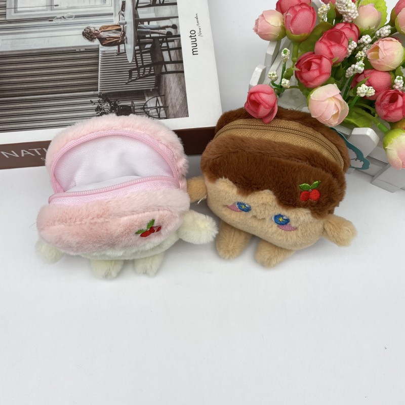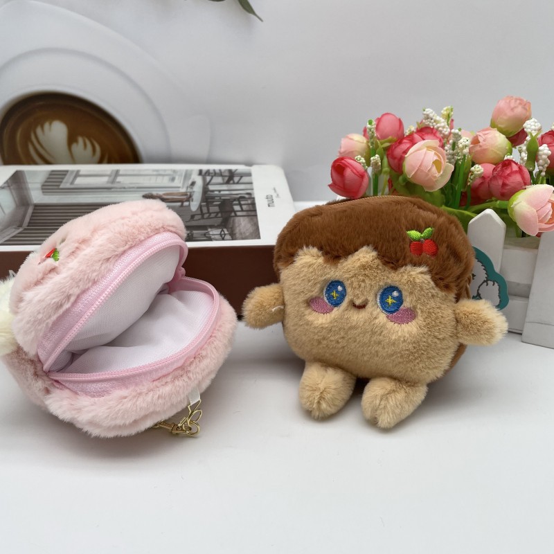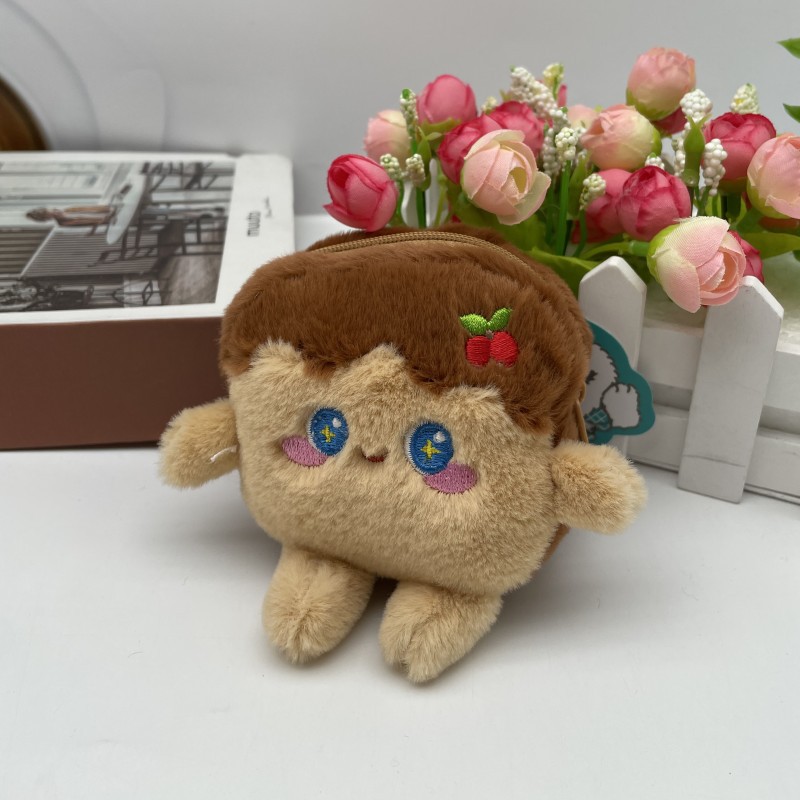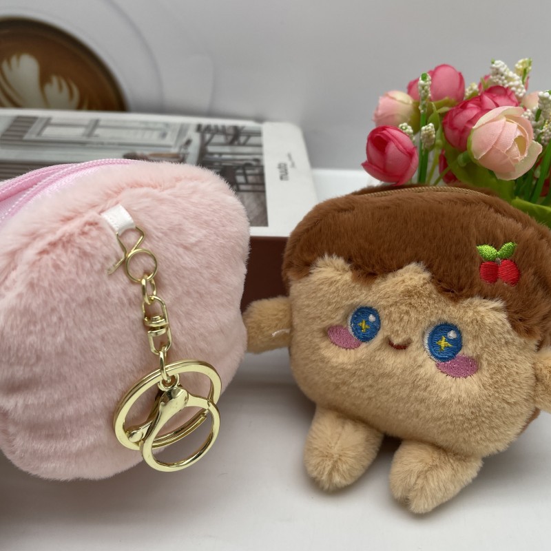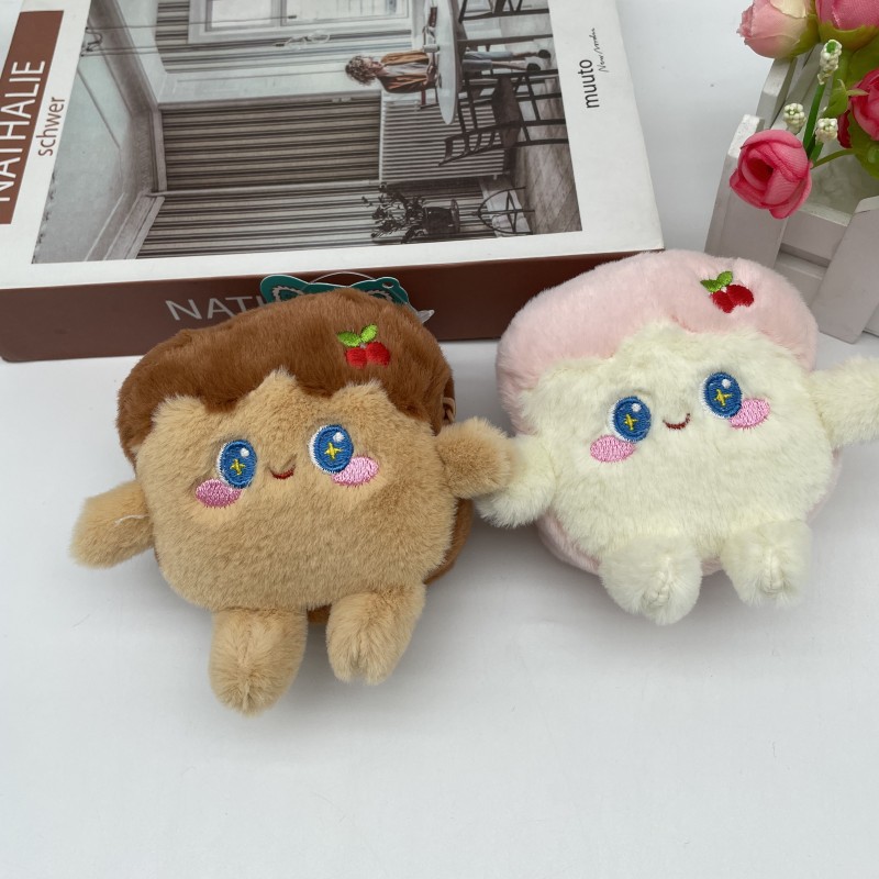 卡通可爱仿真吐司零钱包毛绒公仔钥匙扣情侣包包挂件娃娃发夹配饰 English | 投诉