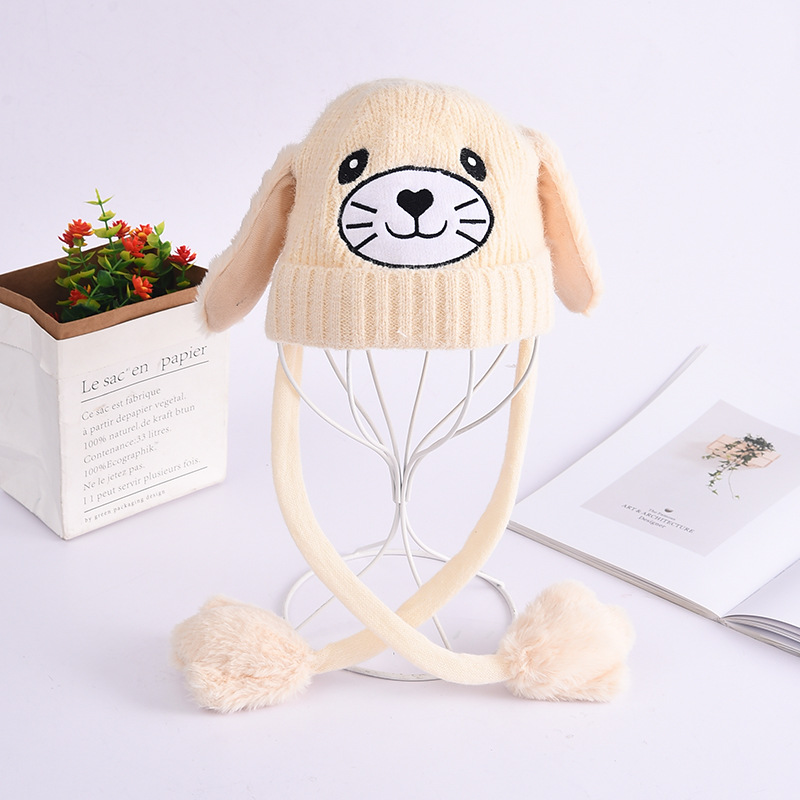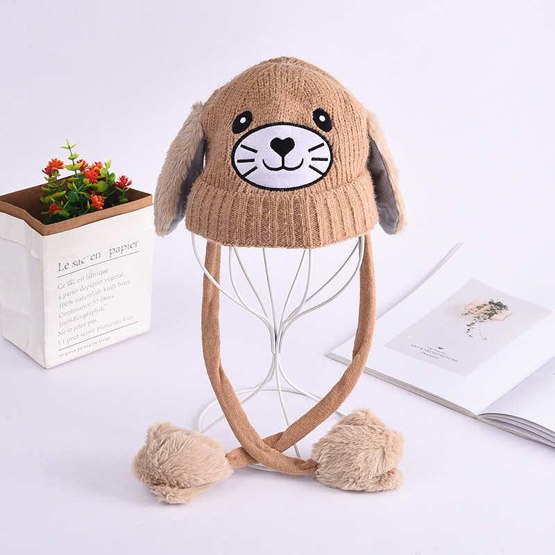 新款秋冬季可爱卡通儿童保暖耳朵会动的帽子针织毛线毛球帽批发 投诉