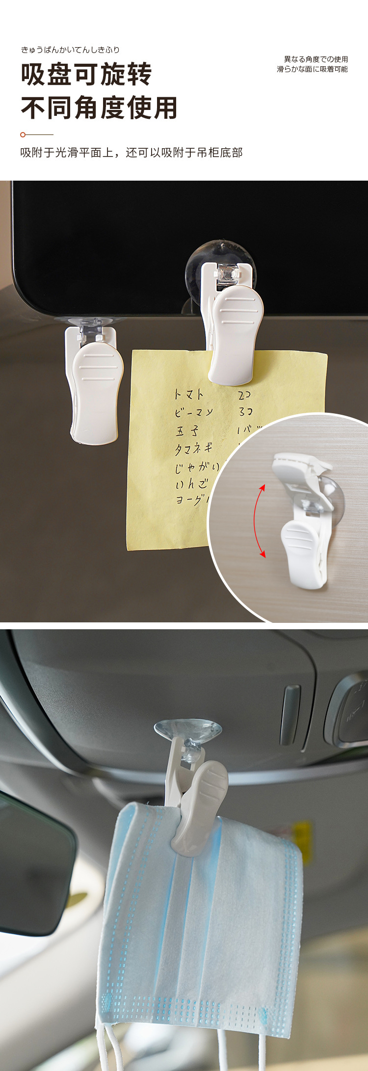 KM 5232 照片夹票据夹留言夹带吸盘小物夹车内用小物收纳夹壁挂夹 投诉