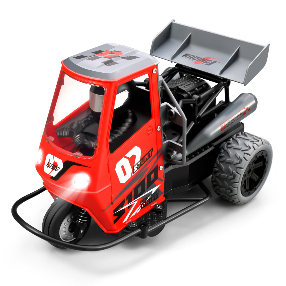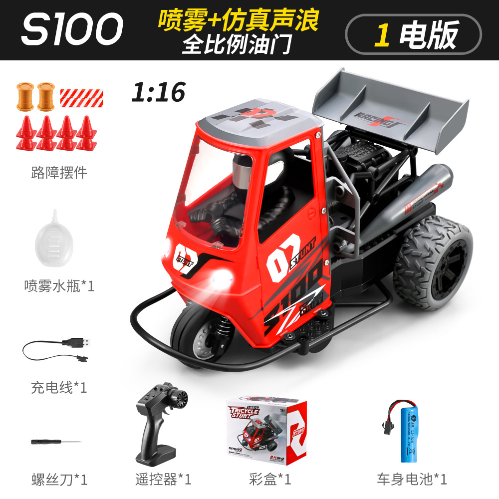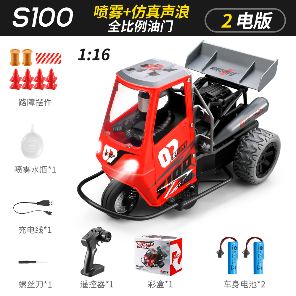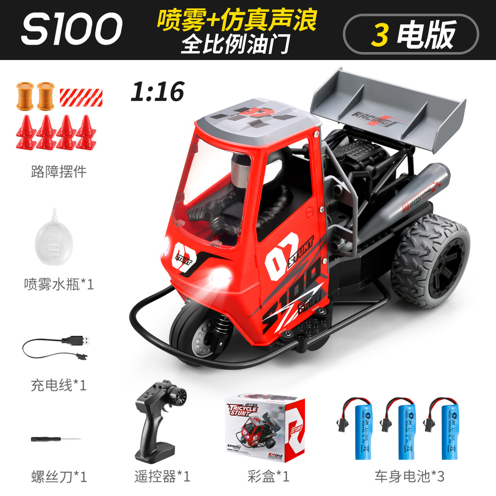 跨境三轮遥控车全比例1:16灯光带喷雾三轮摩托车特技漂移遥控车