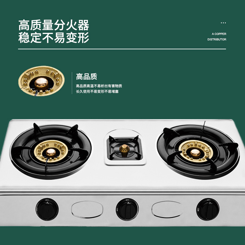 家用三眼煤气灶 液化气燃气灶具大火猛火小三灶不锈钢台式煤气灶