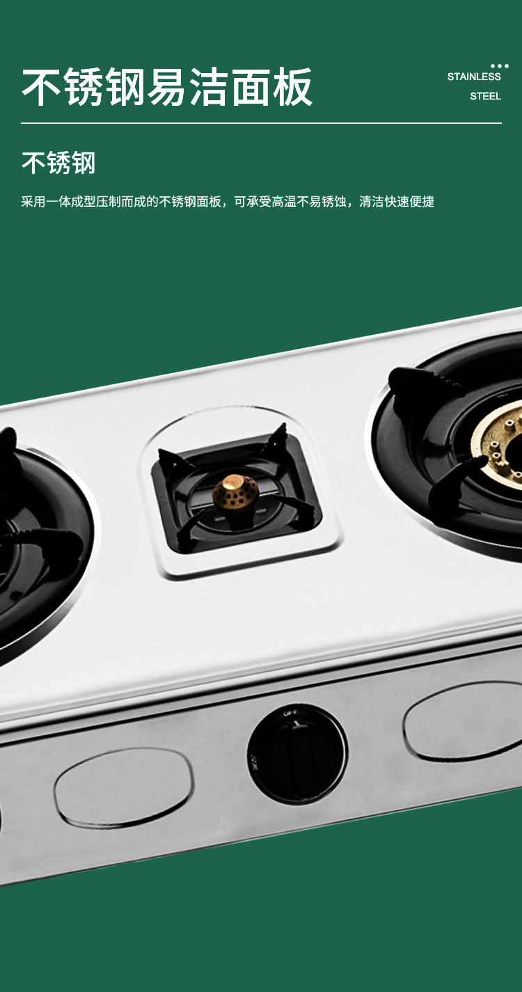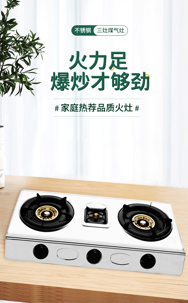 家用三眼煤气灶 液化气燃气灶具大火猛火小三灶不锈钢台式煤气灶 投诉