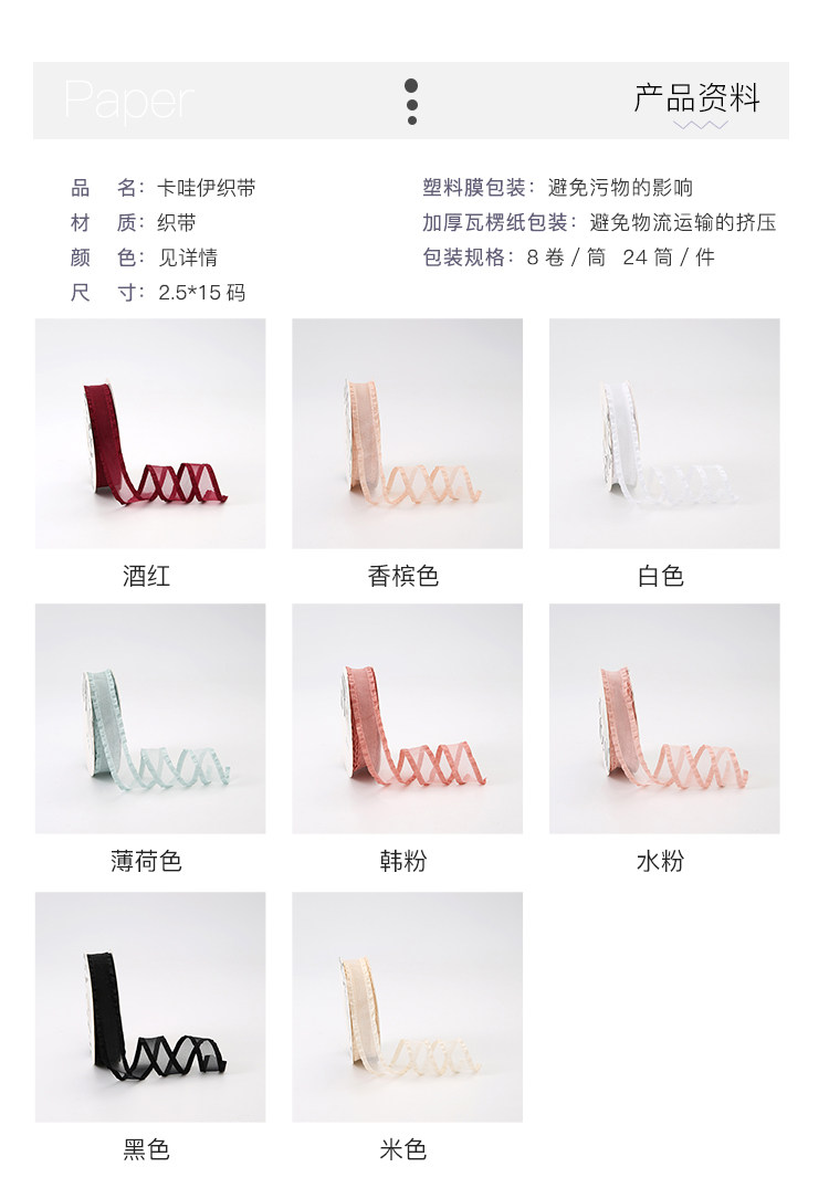 花衣裳 2.5花边褶皱丝带鲜花包装纱带花束礼品烘焙蛋糕包装缎带 投诉