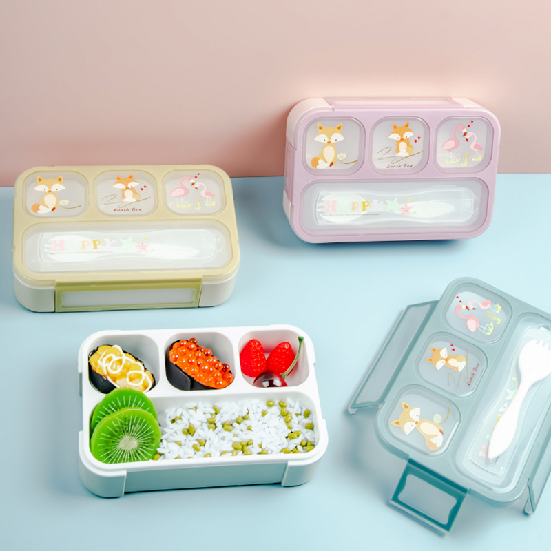 品名:新款卡通400ml3格4格儿童分格密封饭盒 日式学生零食寿司便当饭盒