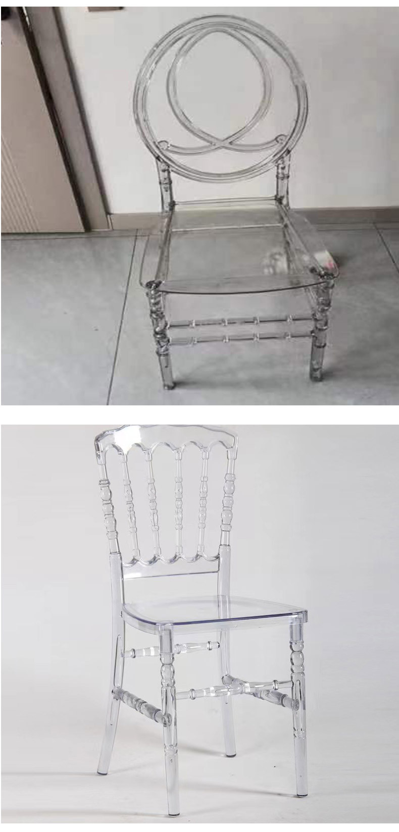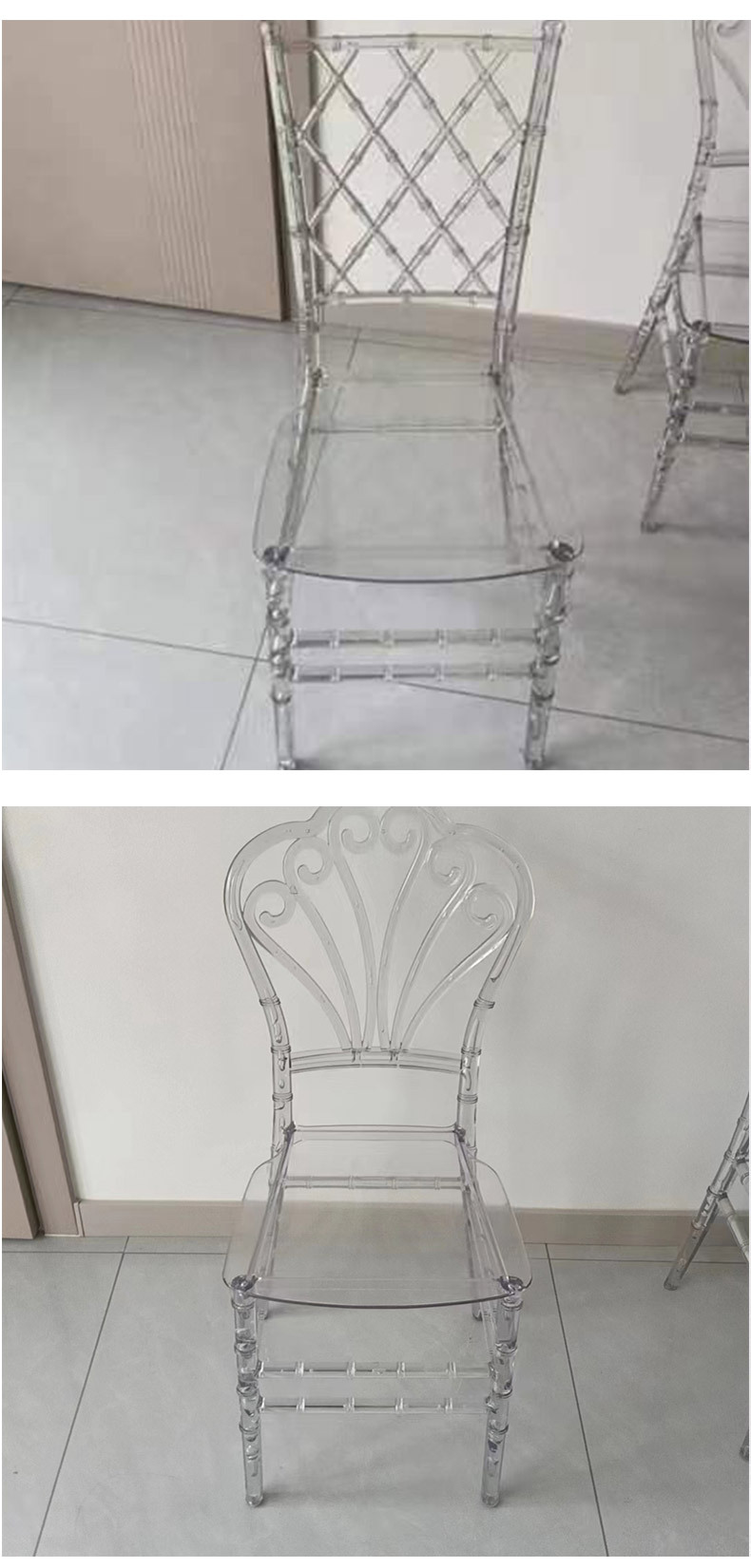 亚克力椅透明竹节椅 酒店主题婚庆礼堂水晶椅塑料透明树脂餐椅 投诉