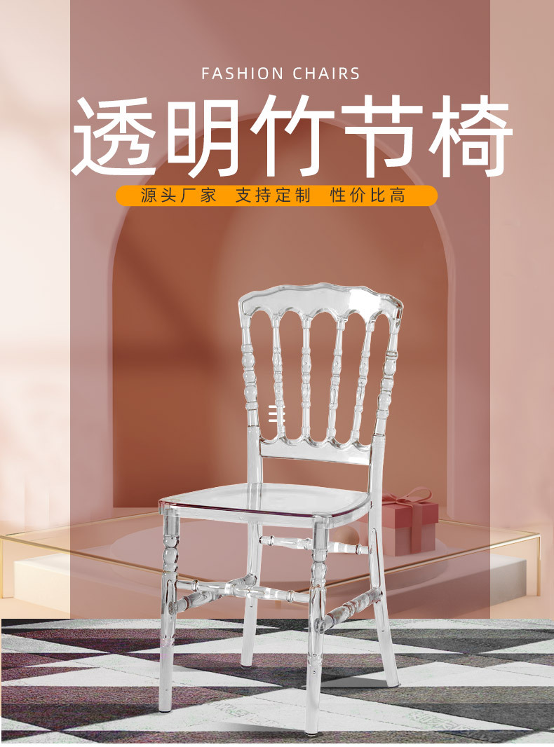 亚克力椅透明竹节椅 酒店主题婚庆礼堂水晶椅塑料透明树脂餐椅