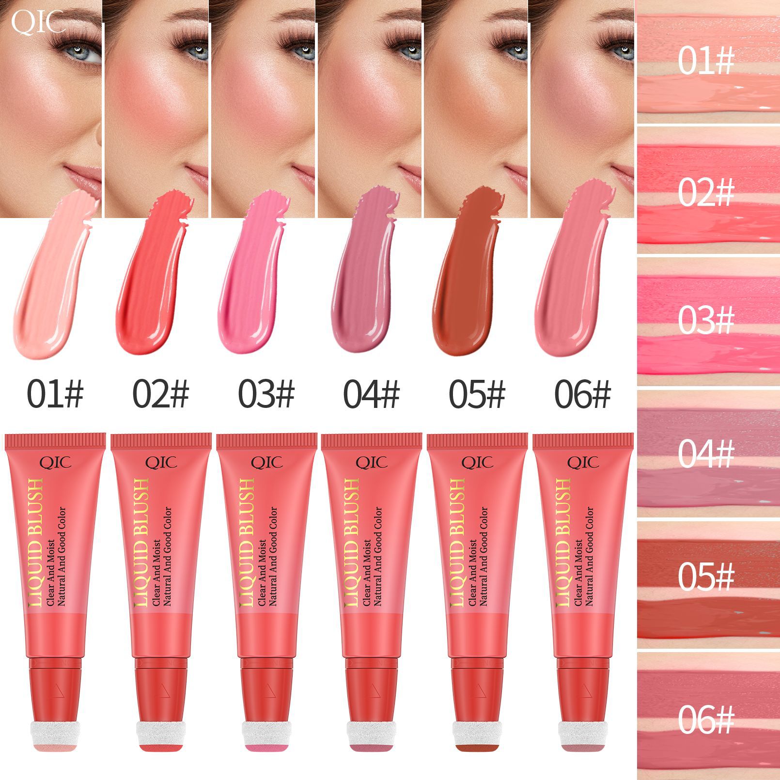 QIC跨境轻透柔色腮红膏保湿水润易推开丝滑持妆液体腮红胭脂美妆